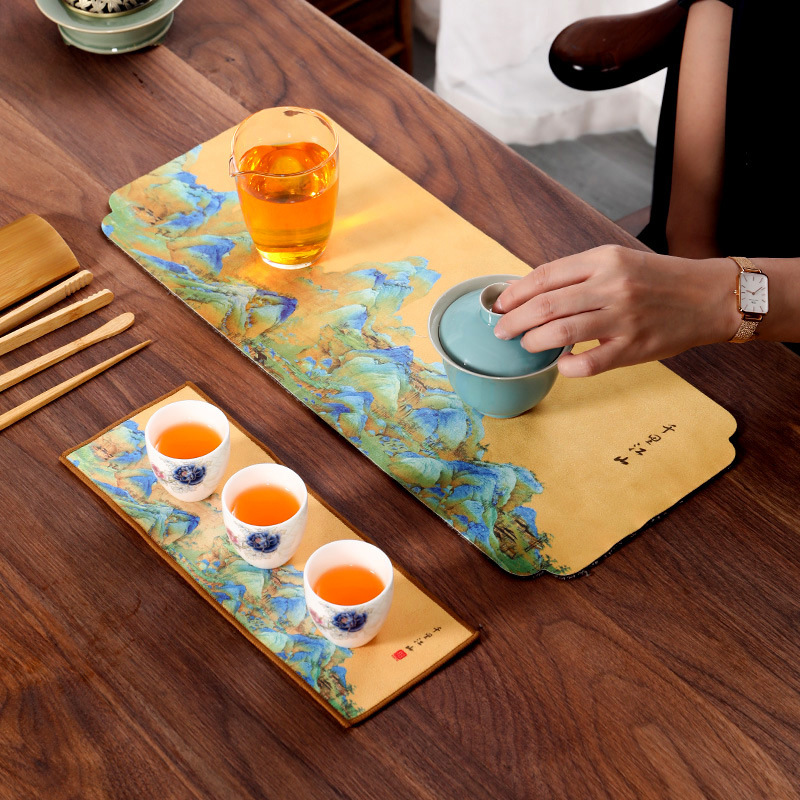 卸売り高級厚手のぬいぐるみ吸水茶巾彩絵禅意タオル茶布専用茶テーブルクロス