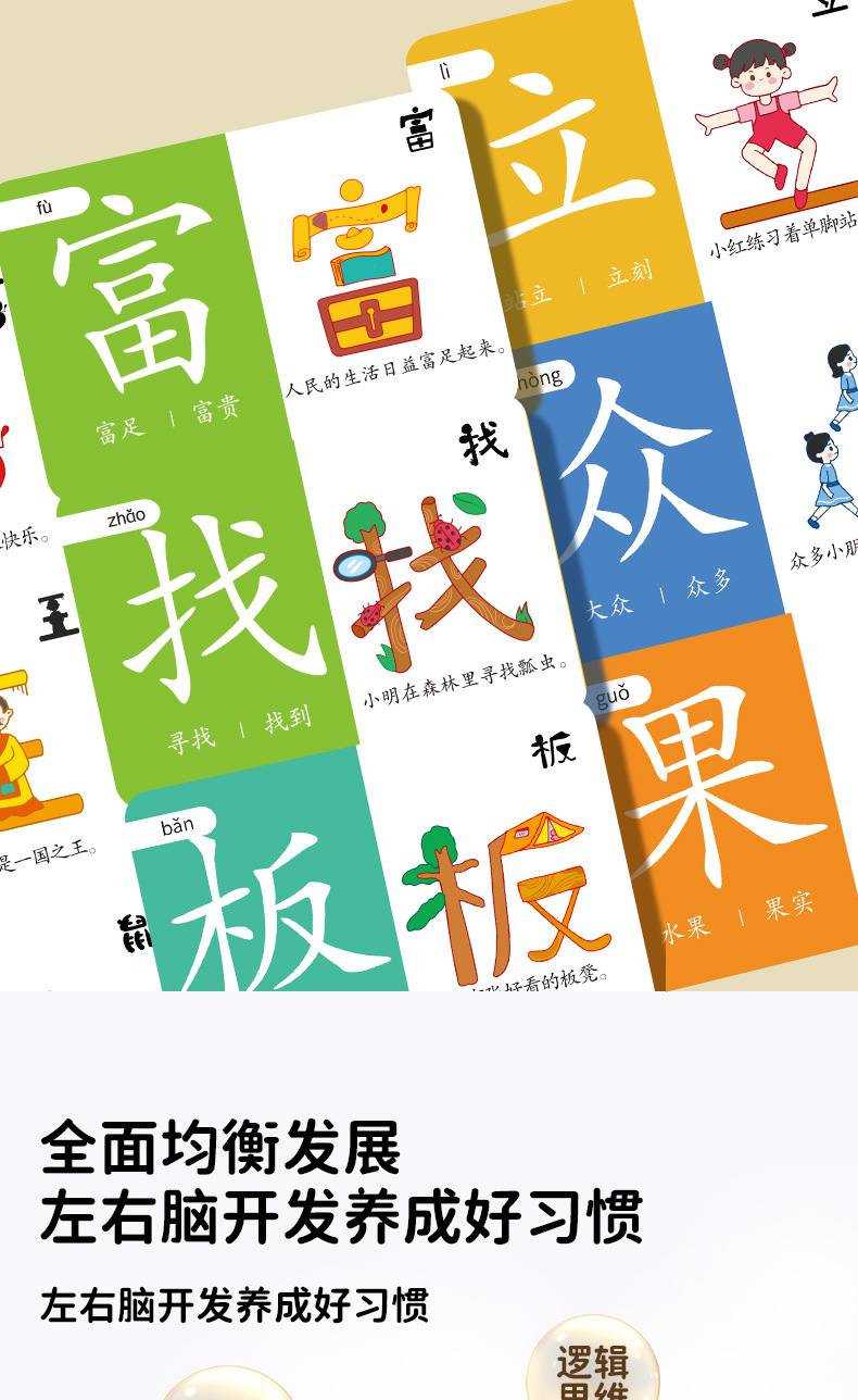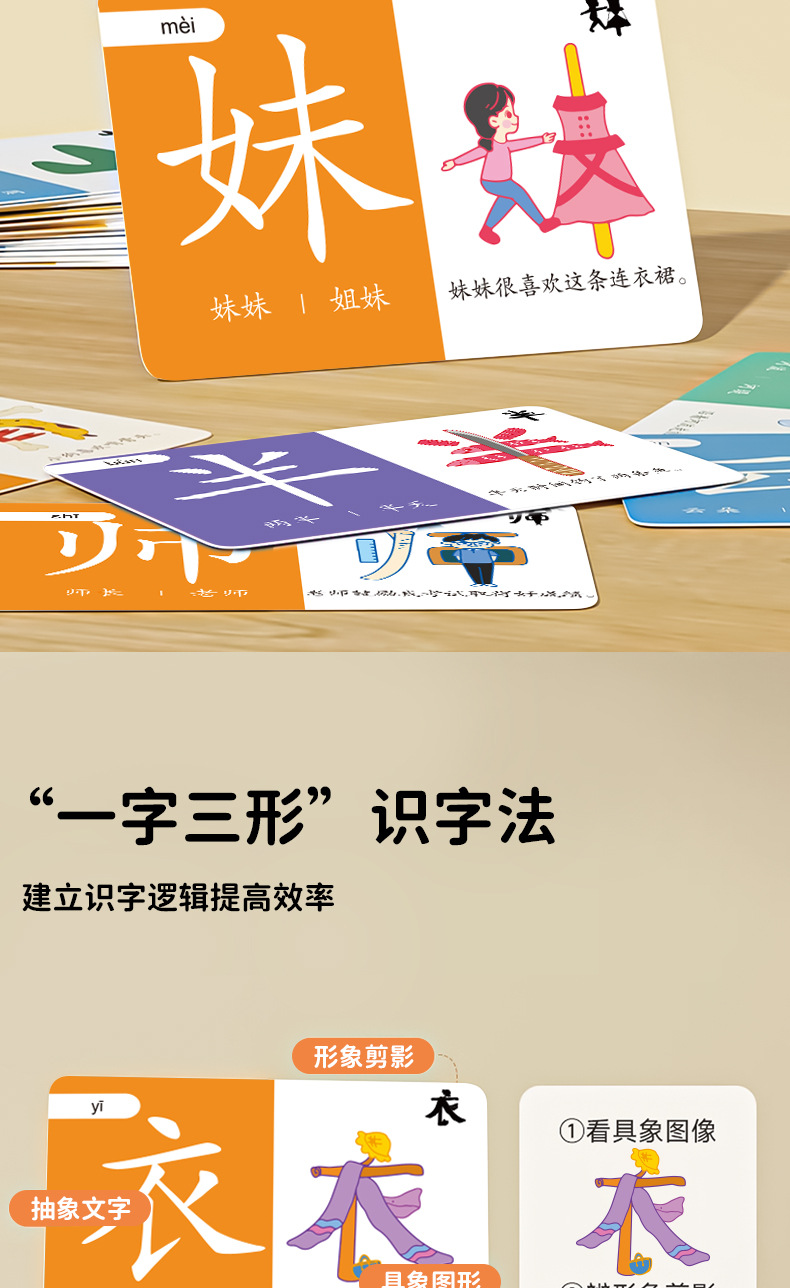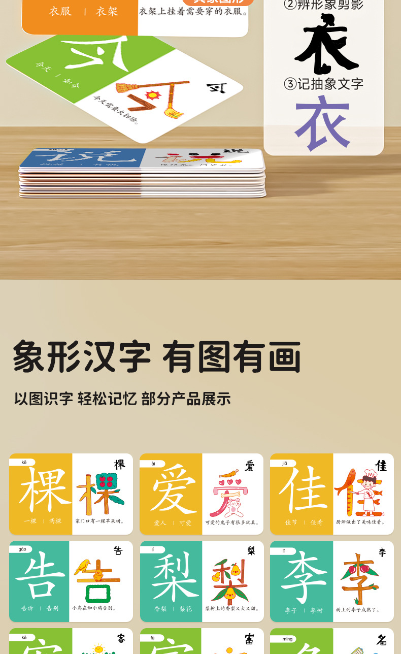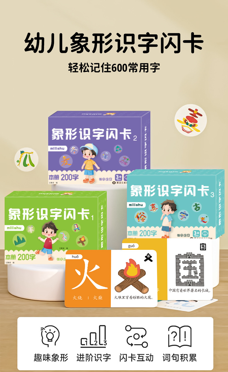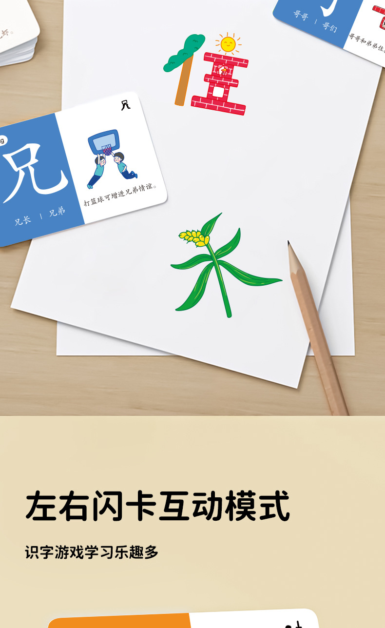 儿童象形识字卡3-6岁宝宝早教启蒙认汉字卡片基础生字卡早教闪卡