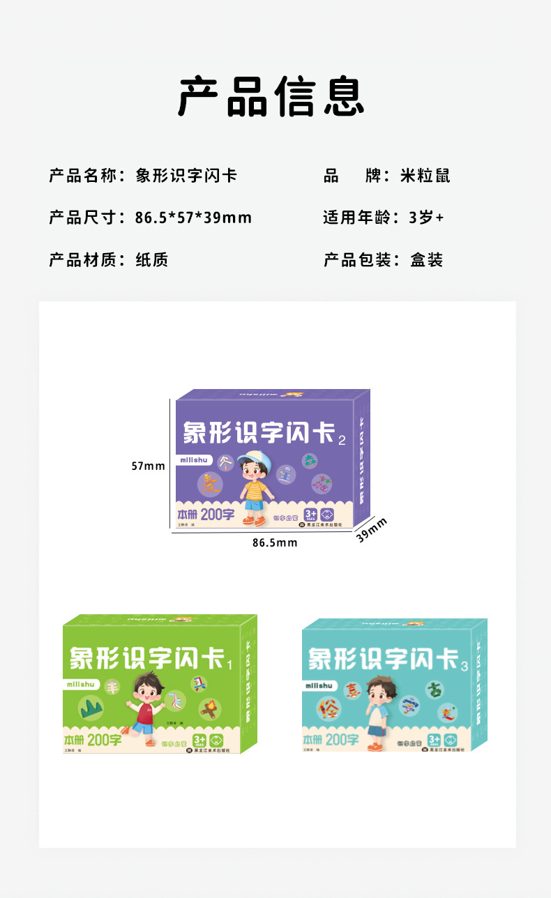 新版象形識字カード3-6歳児童早教啓蒙認識漢字カード基礎生字カード早教フラッシュカード