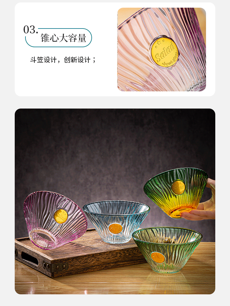 新しい高颜値ガラスボウルクリエイティブ大容量サラダボウル軽贅沢風ガラスボウルギフトセット家庭用卸売り