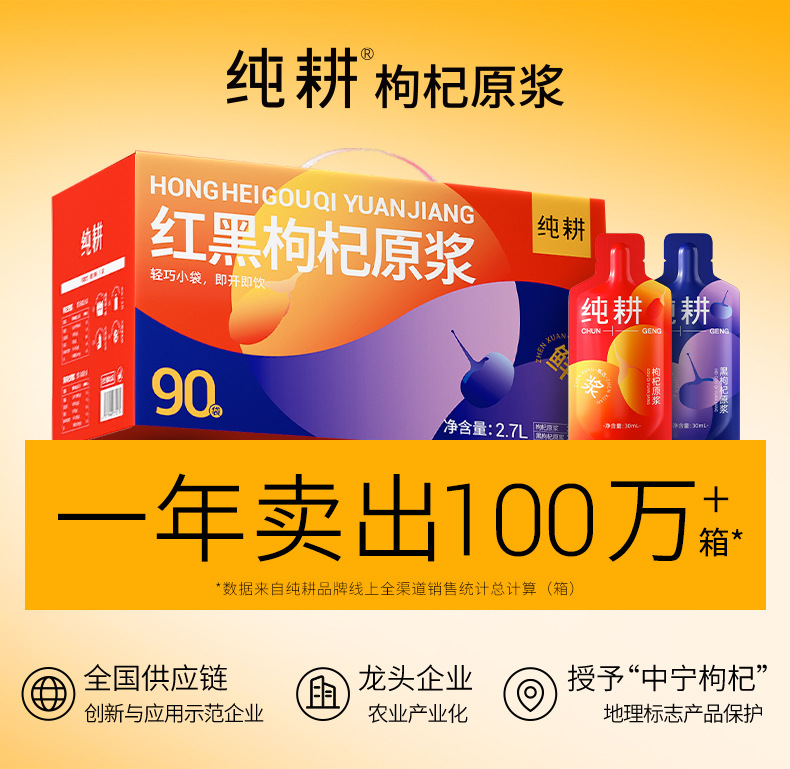 纯耕2.7L(90袋)量贩装红黑枸杞原浆组合 红黑枸杞原浆新年礼盒