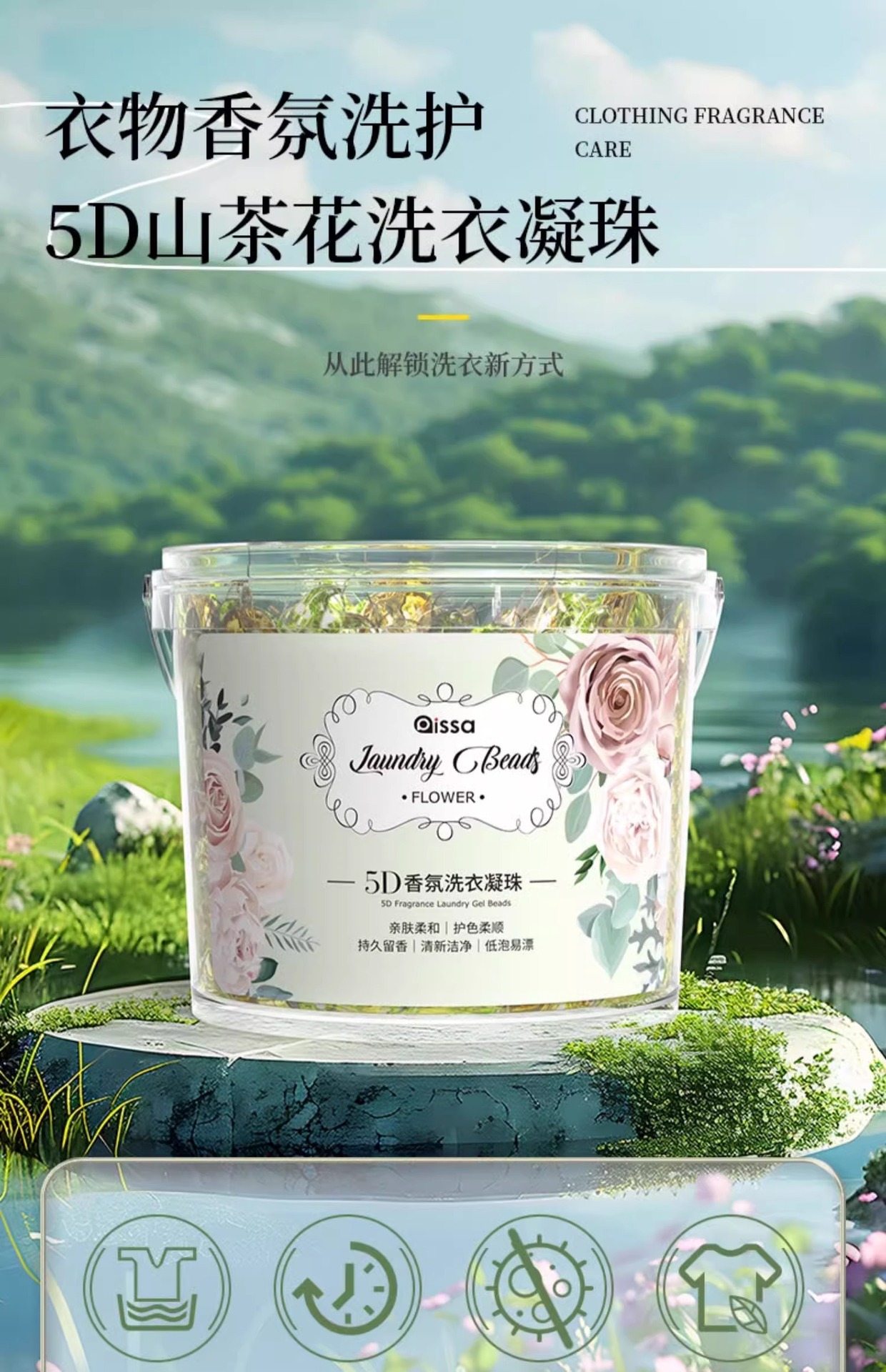 五合一山茶花洗衣凝珠除菌除螨持久留香香水型强力去污洗衣液