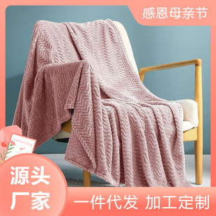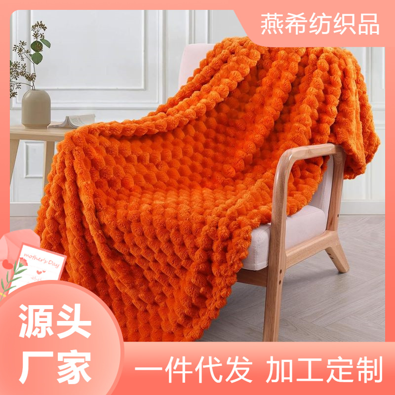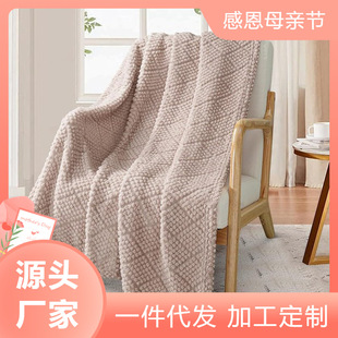 クロスボーダーグリッドコーン粒フランネル毛布、厚手で裏起毛、オフィス昼休み用毛布、肌に優しい毛布、超柔らかい