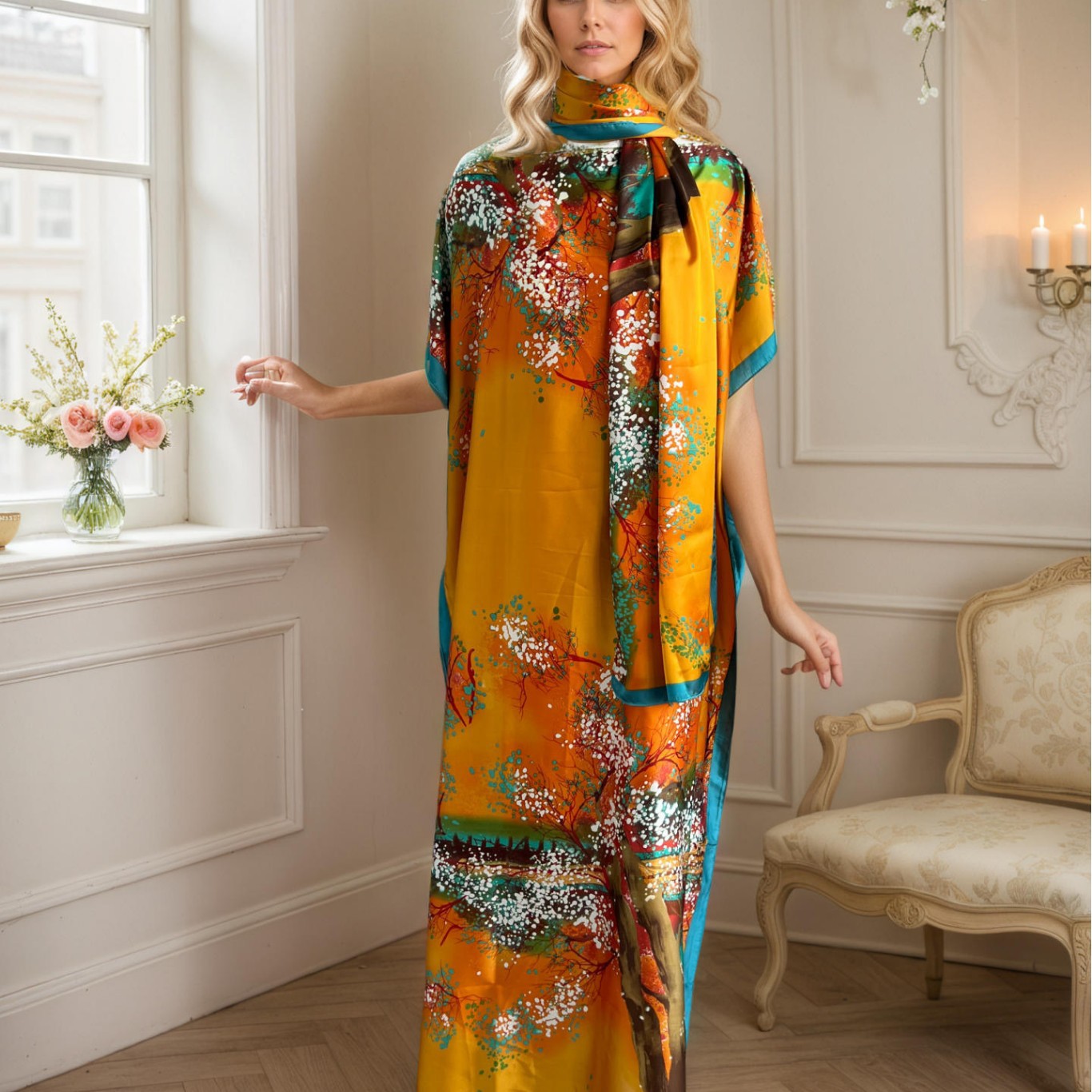源头厂家跨境新款女中东风格宽松长袍连衣裙配同色头巾时尚套装