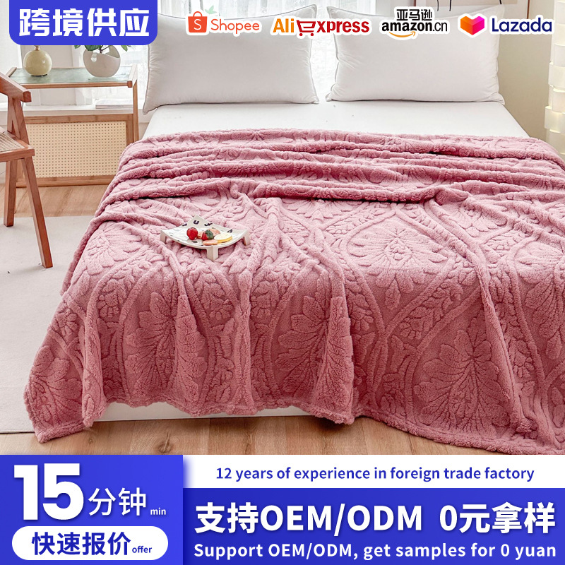 爆款专供亚马逊跨境电商胶印荧光法兰绒毛毯发光盖毯空调毯沙发毯