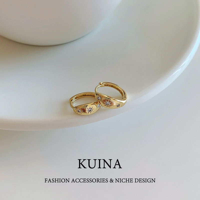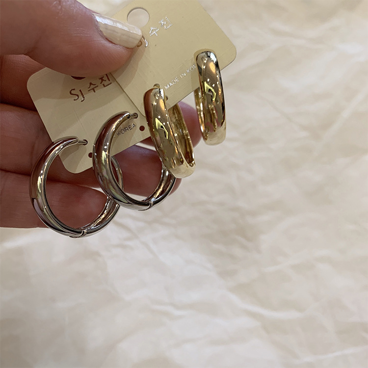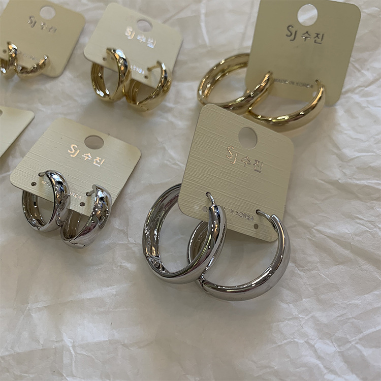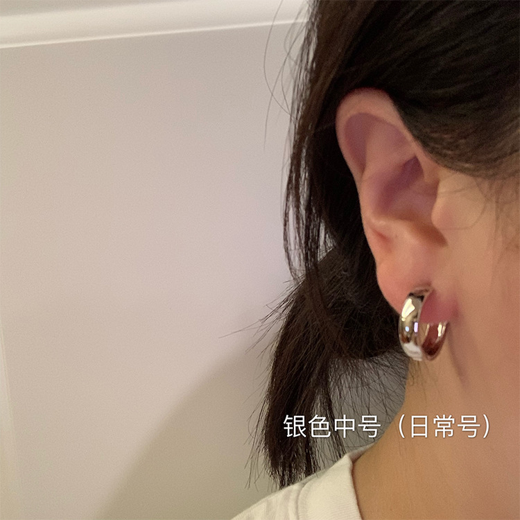 SUGARマットメタルサークルピアスレディースins冷淡风个性耳轮秋冬レトロ高级感ピアス