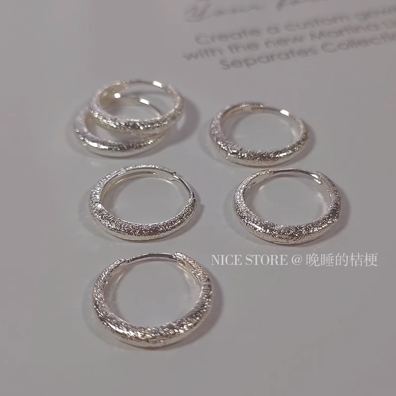 2026年劉亦菲と同じスタイルの大きなサークルS925シルバー針イヤリング、女性用、デザイン性のあるヨーロッパとアメリカのマットなつや消しラウンドイヤリング