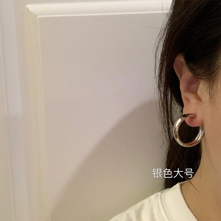 シルバープレーンフープイヤリング 2024 新しいホットスタイルニッチデザインハイエンドラージフープイヤリングコールドスタイルイヤリング女性用