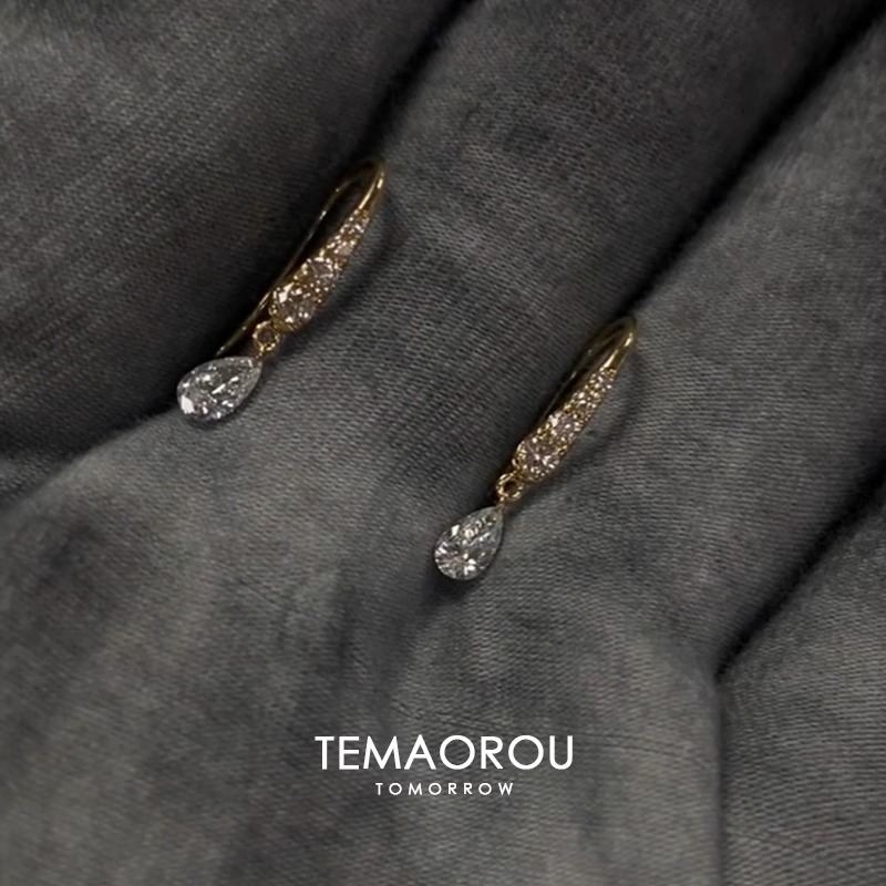 18k金水滴ジルコン流蘇耳フック気質イヤリング軽贅沢高級感養耳穴ピアス
