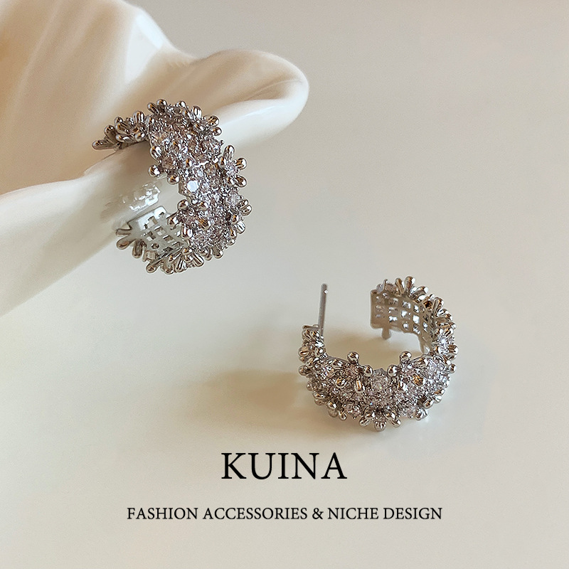 高級感溢れる超キラキラ輝くフルダイヤモンドのイヤリング、レディース向け、軽やかな高級感、上品でスタイリッシュな人気商品