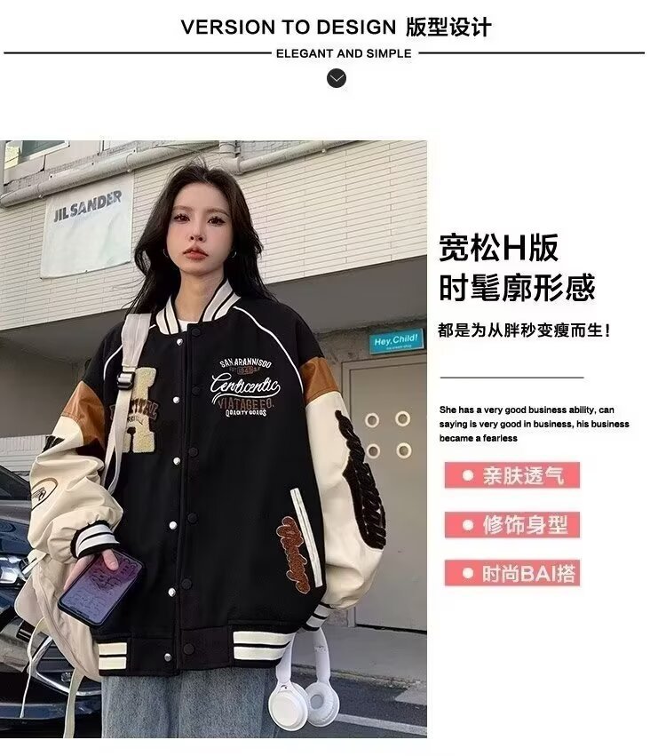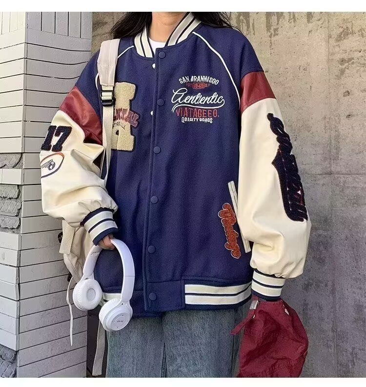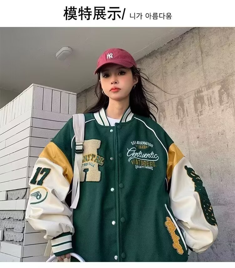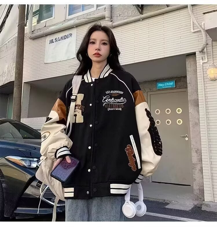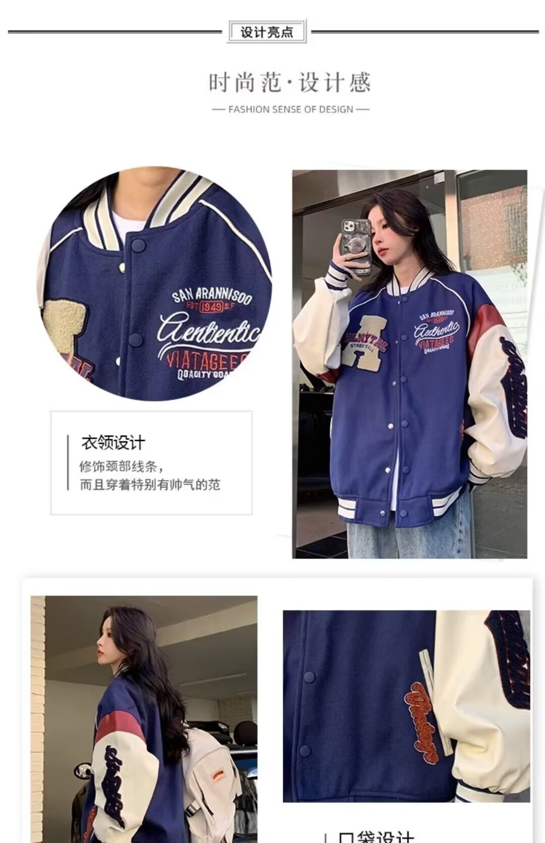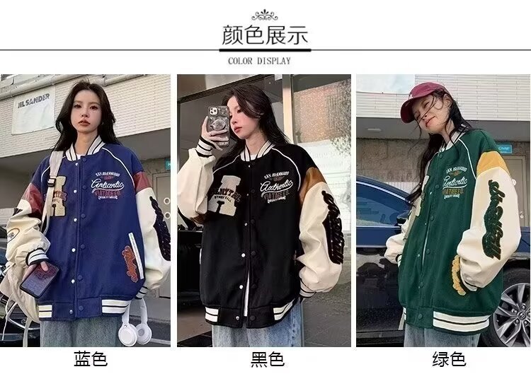 アメリカレトロ野球服男性春秋bf風刺繍ジャケット男女街頭カップル学生衝突色コートブーム
