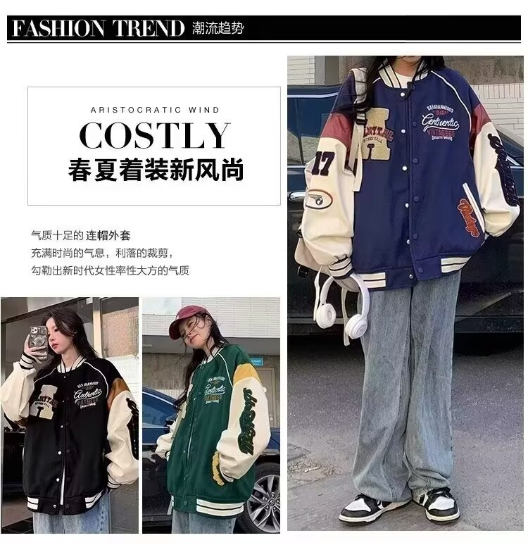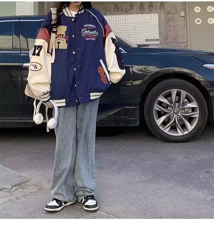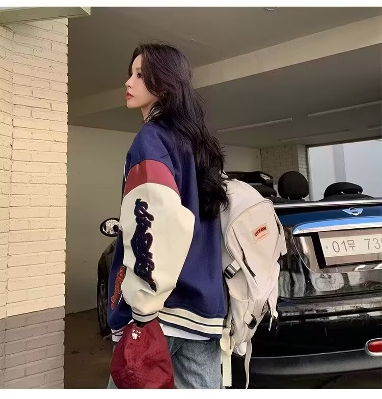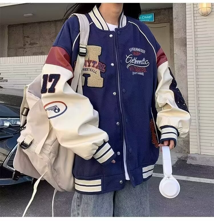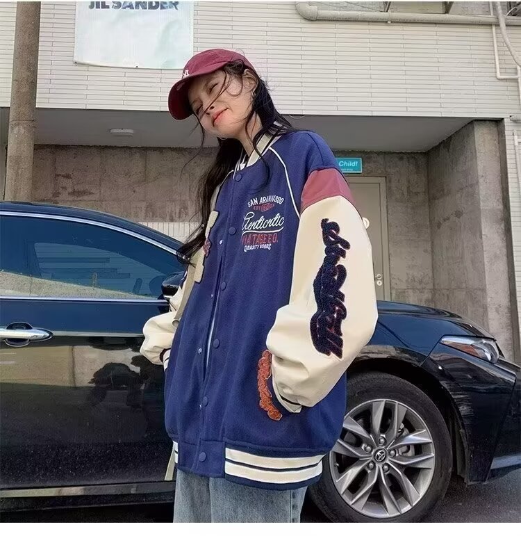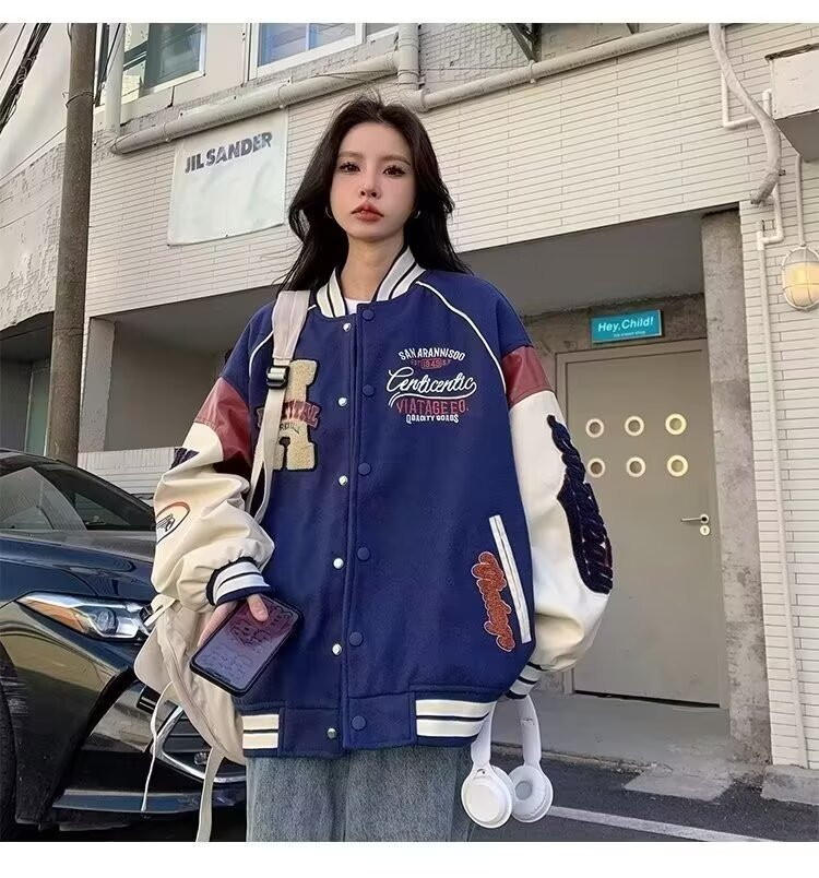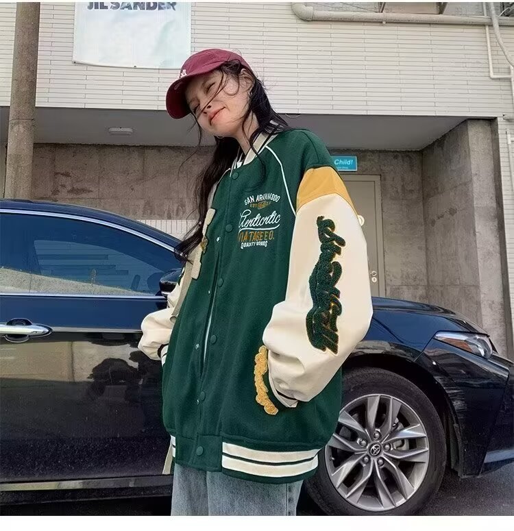 アメリカレトロ野球服男性春秋bf風刺繍ジャケット男女街頭カップル学生衝突色コートブーム