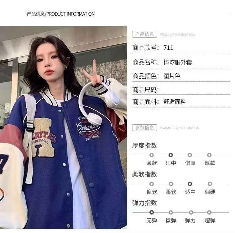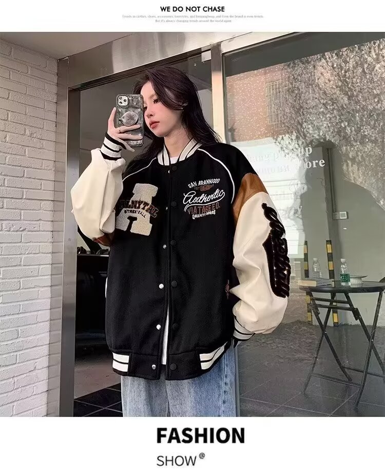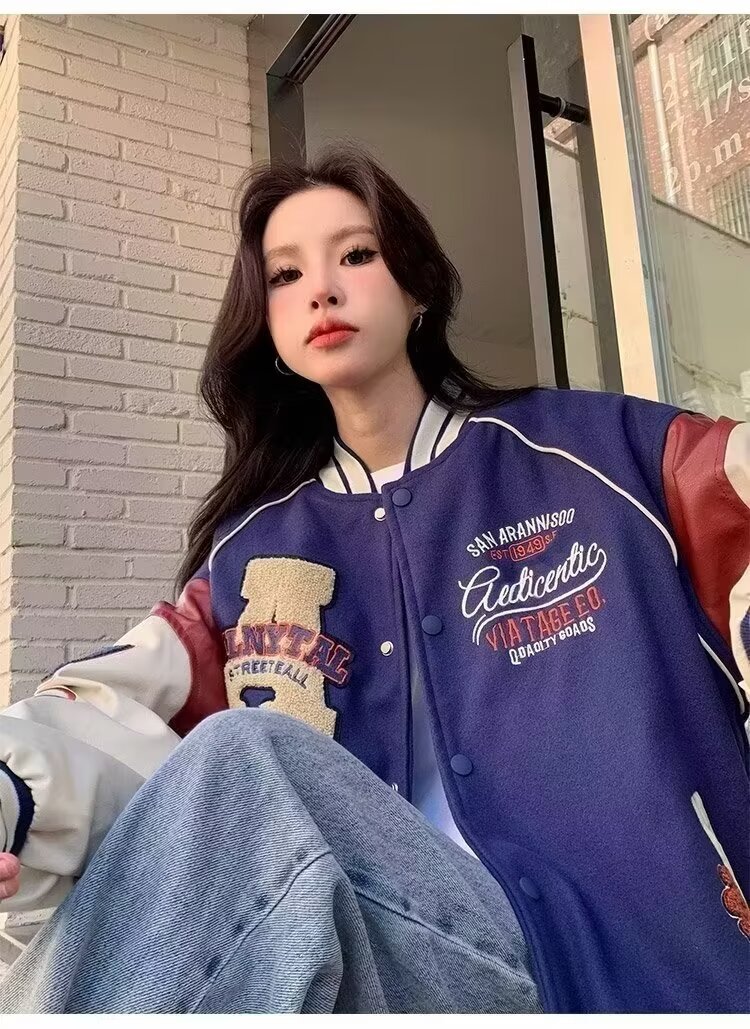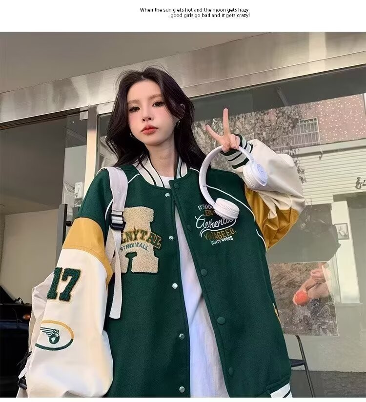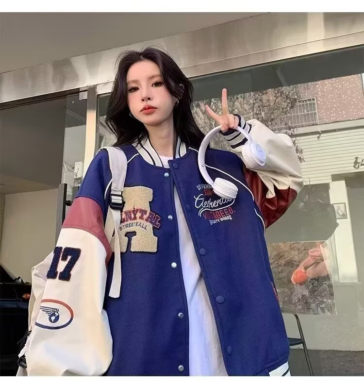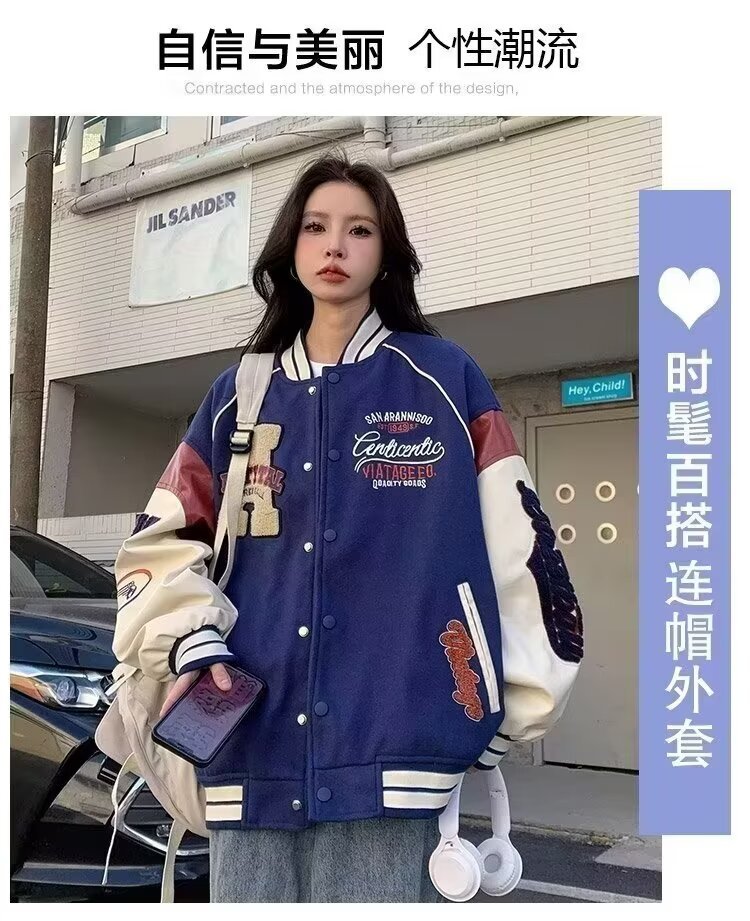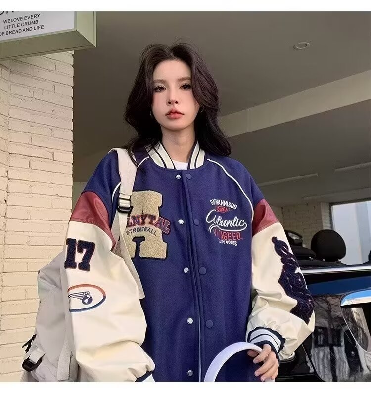 アメリカレトロ野球服男性春秋bf風刺繍ジャケット男女街頭カップル学生衝突色コートブーム
