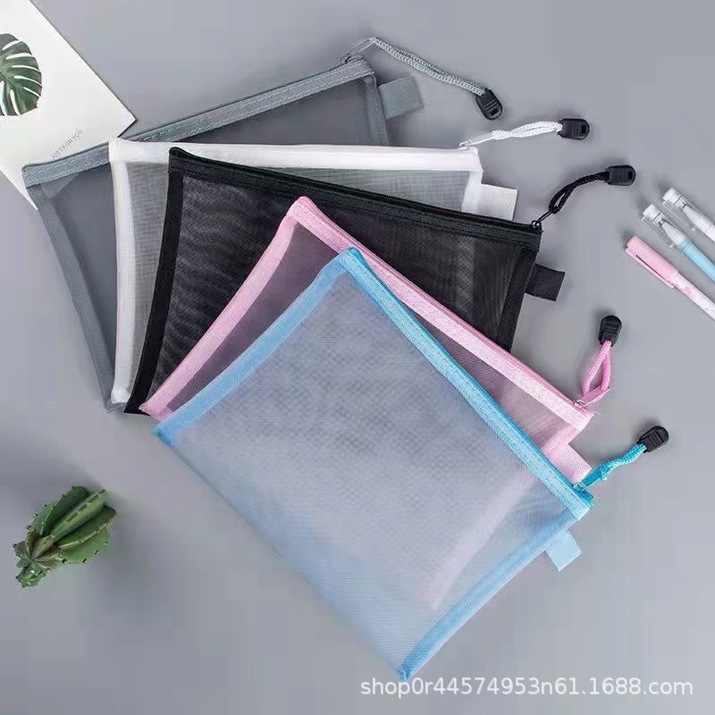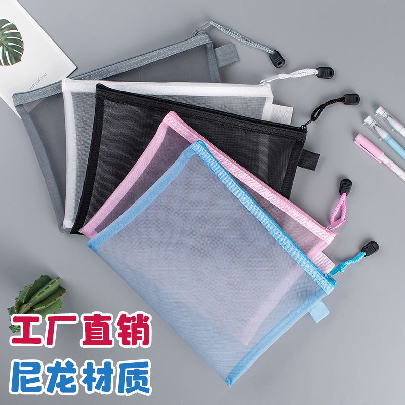 ナイロンメッシュ書類袋a4透明ジッパー試巻資料袋パズル収納袋オフィスa5学生科目袋
