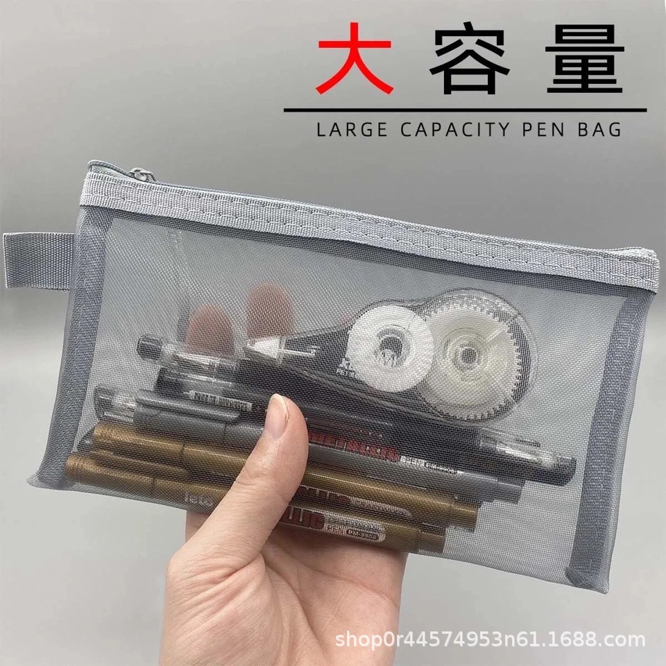 韓国風シンプル透明メッシュペンケース収納袋学生試験用携帯ペンケース大容量鉛筆袋