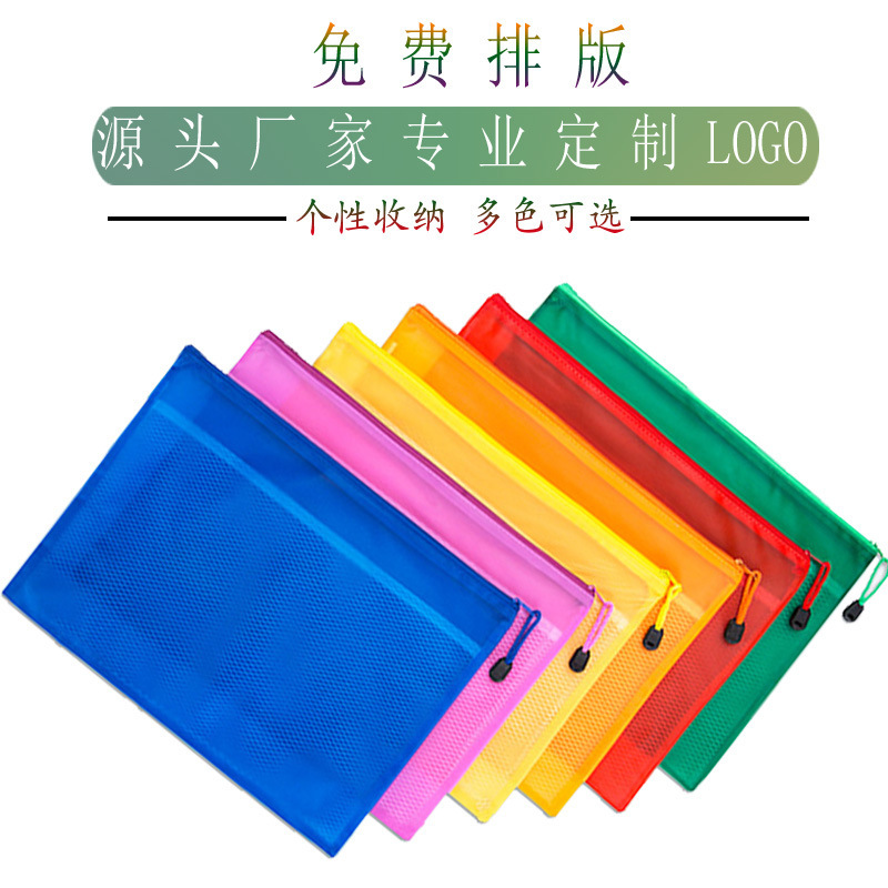 広告印刷可能な挟み網PVC透明ファスナーA4防水書類袋事務資料袋中網収納袋