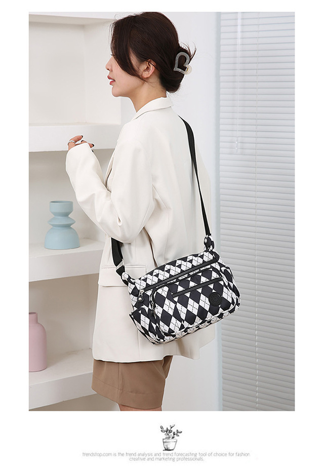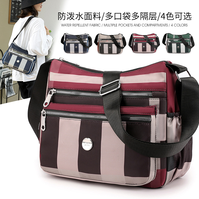 新款女士斜挎包尼龙时尚条纹单肩包女大容量多层简约中年妈妈包
