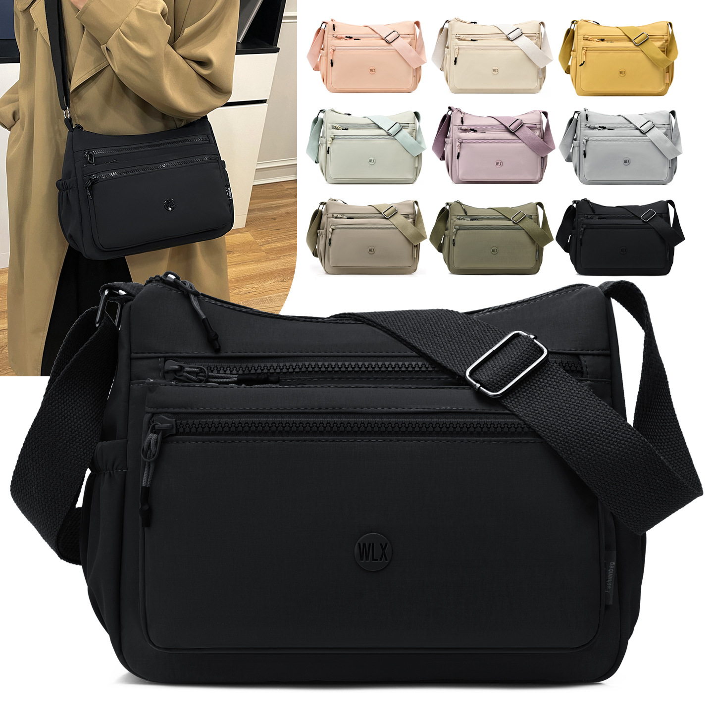 时尚简约女包旅行休闲多口袋零钱包简约百搭轻便通勤包包斜挎包女