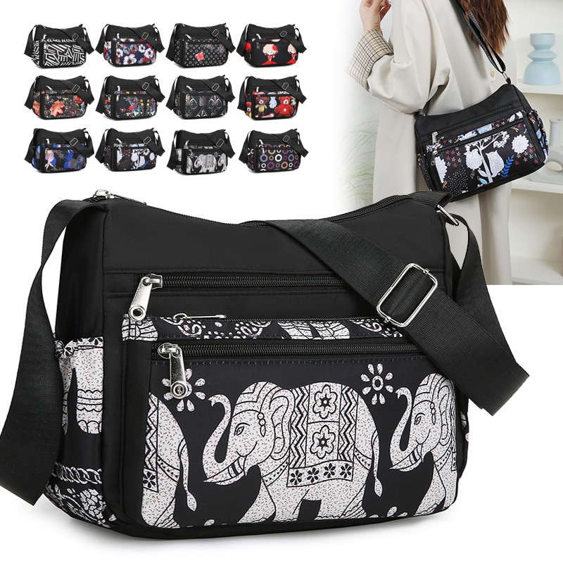 新款时尚流行单肩包大容量日常百搭斜挎包女尼龙休闲印花女包批发