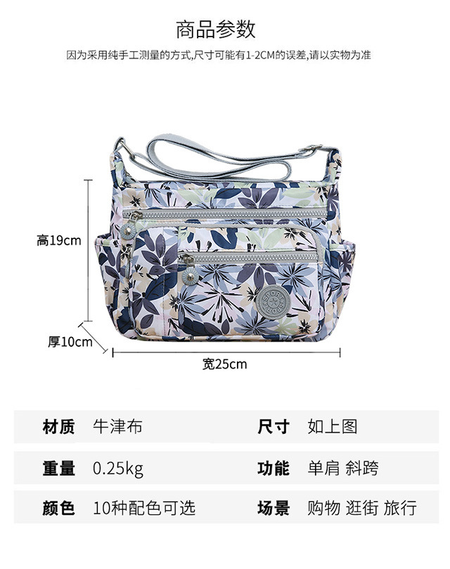 花布包マミーバッグ斜めショルダーバッグカジュアルショルダーバッグ防水オックスフォード布プレゼント多層ファスナークロスボーダー対外貿易