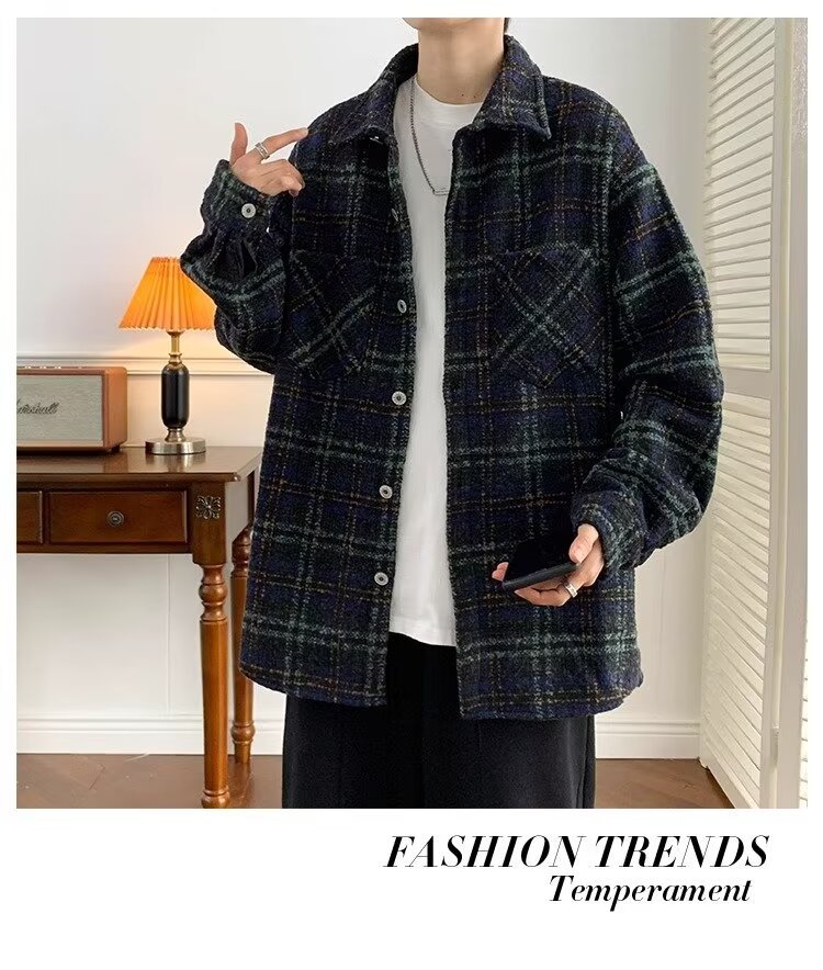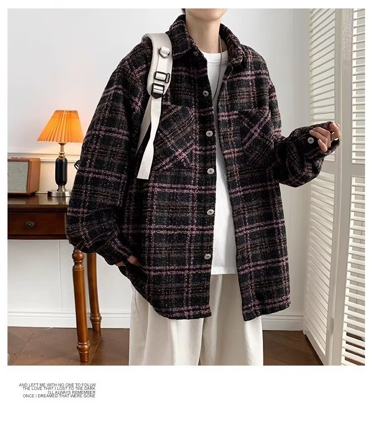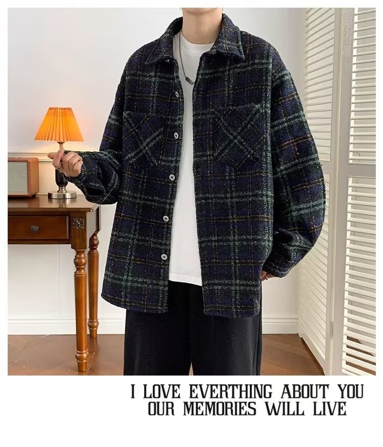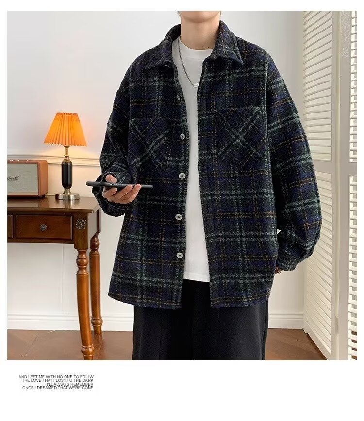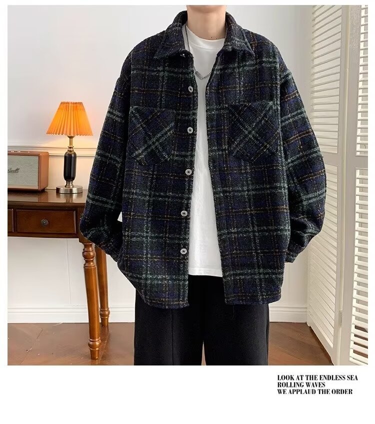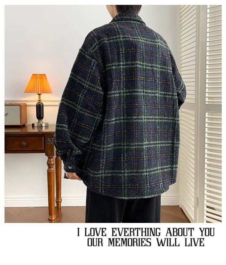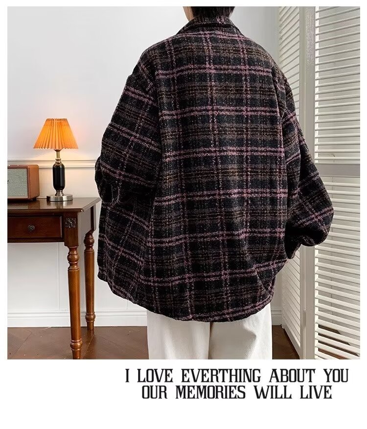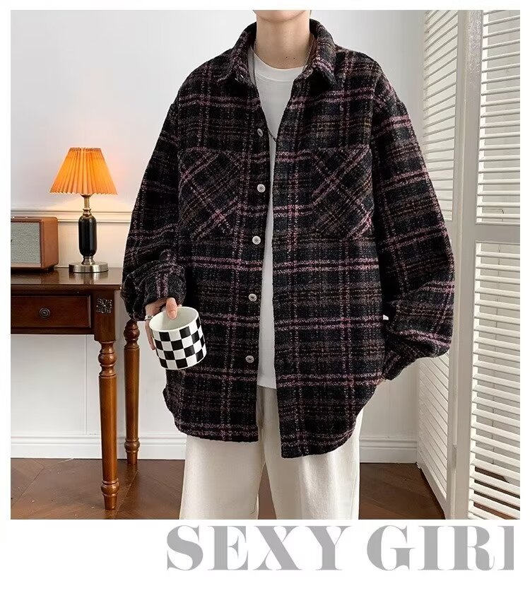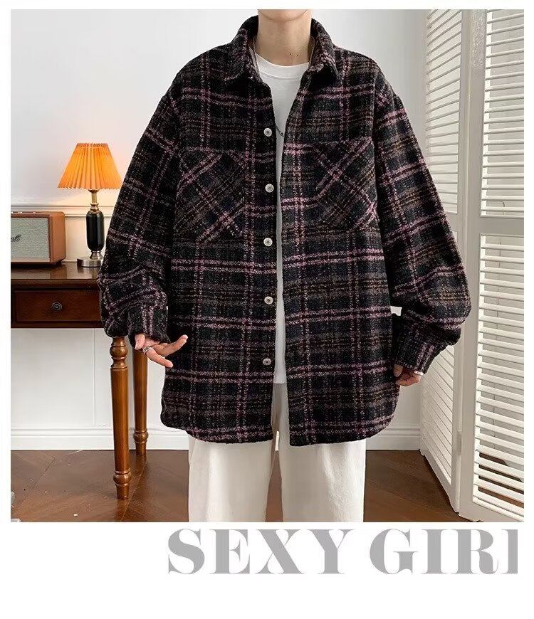 日系レトロ高級感コート男春秋新作小香風格子シャツジャケット潮牌カップル服男
