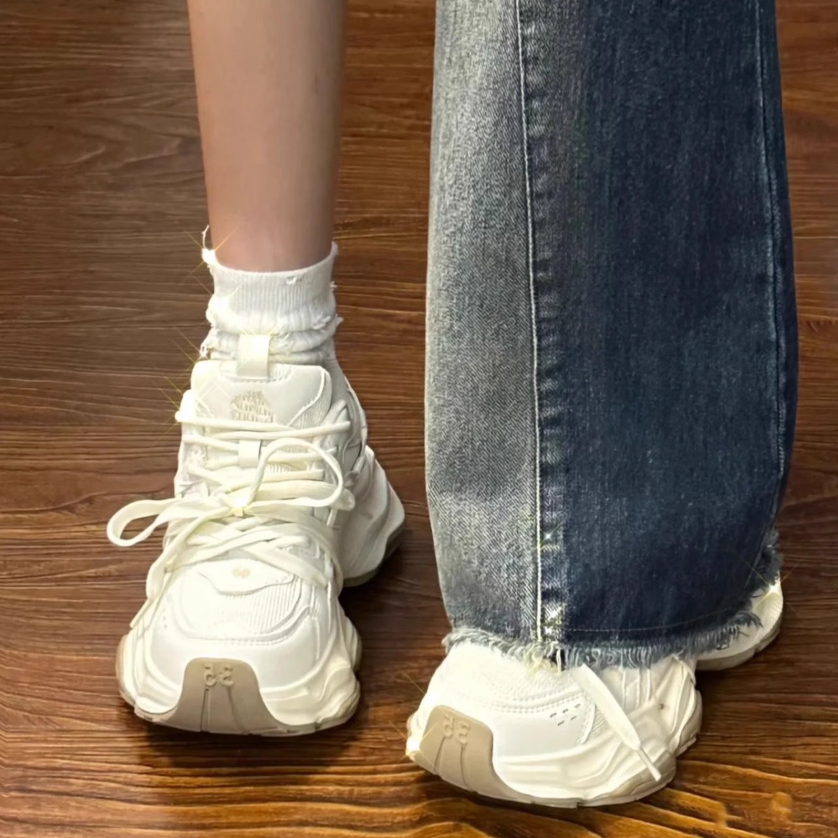 人気のレディースシューズ、厚底ダッドシューズ、身長アップ、2025春秋新作、インスタ映え、クールでカジュアルなスポーツシューズ、白いスニーカー