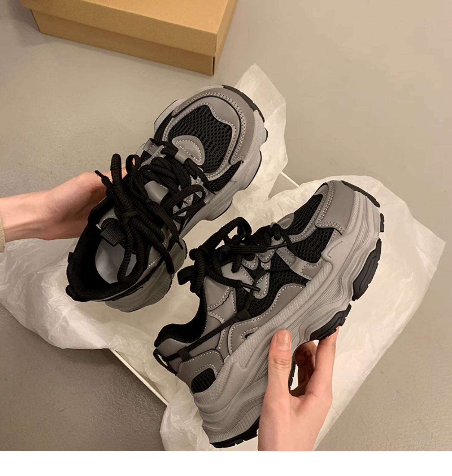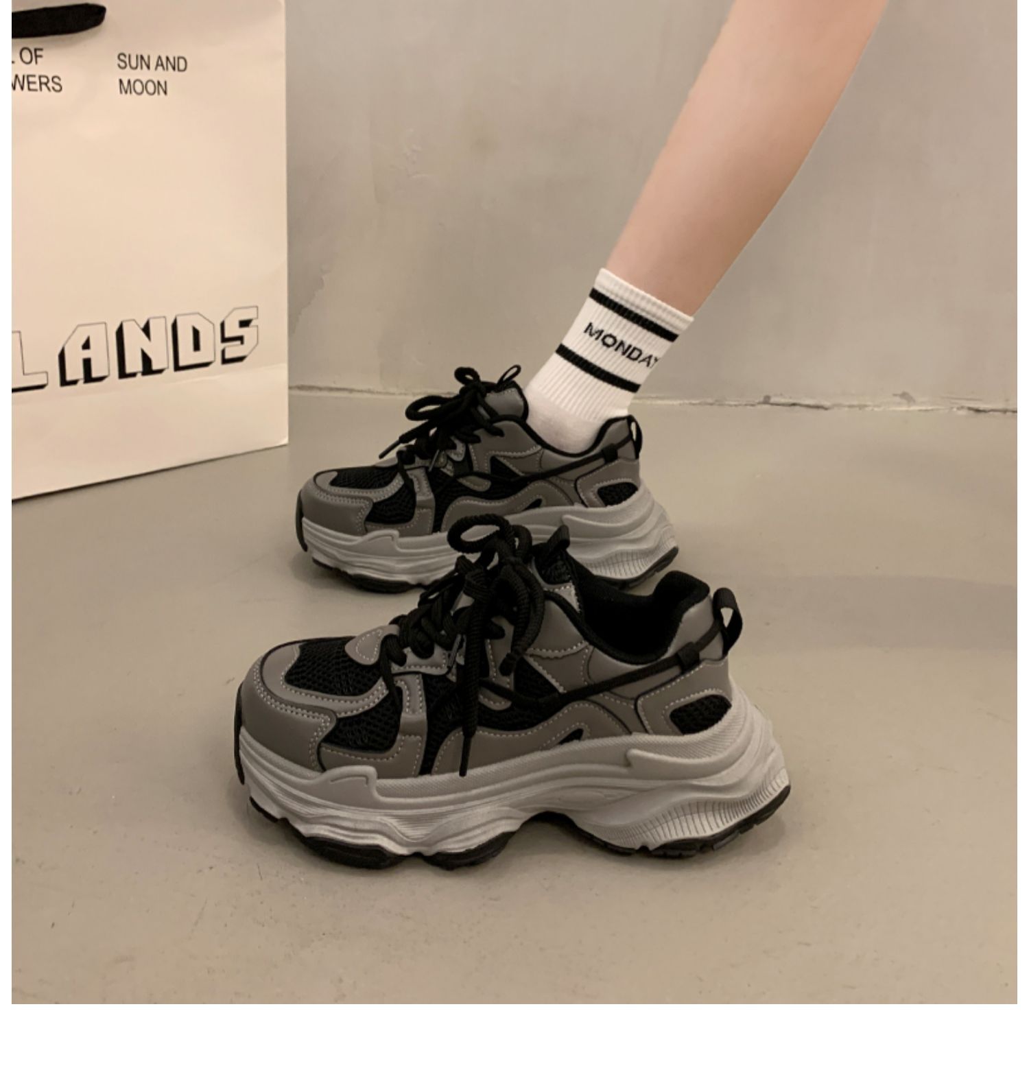 ネットセレブ厚底ダッドシューズレディース2025春新作カジュアルスポーツレディースシューズメッシュ超人気痩身ランニングシューズ