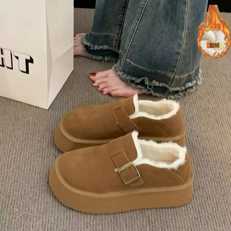 レトロな毛皮のようなビルケンシュトックシューズ女性の冬のベルベットの厚みと暖かさ 2025 新しいホットスタイルスノーコットンシューズスノーブーツ