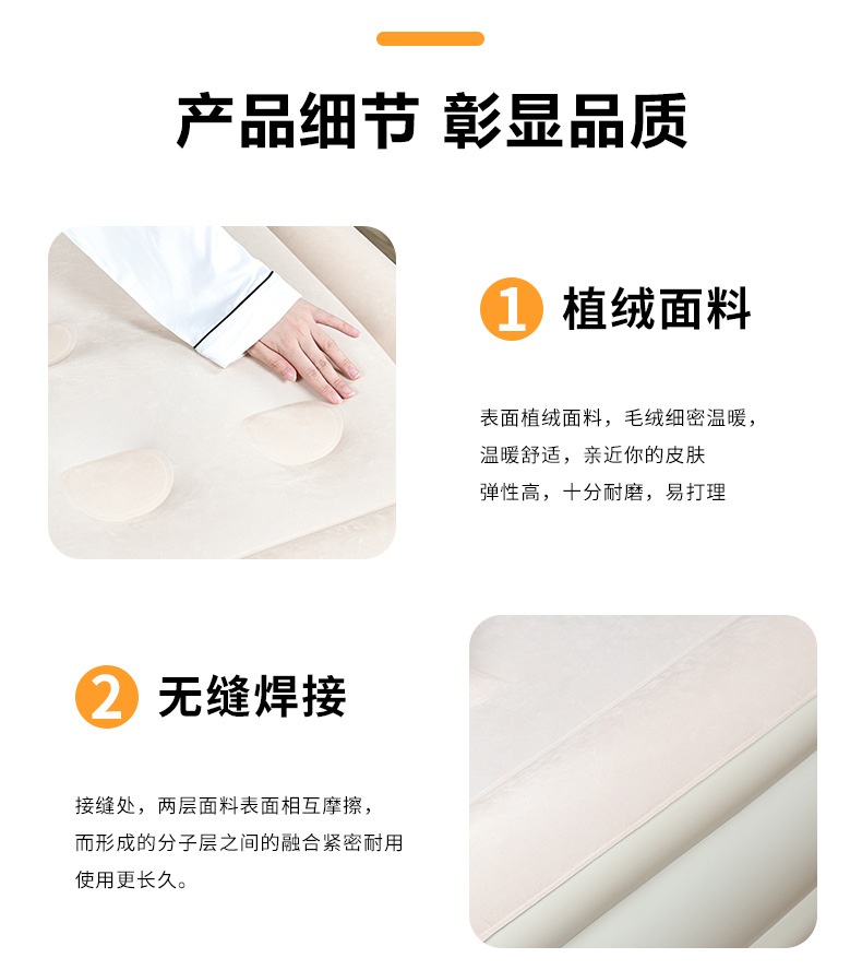 屋外キャンプ高さ増厚植毛自動インフレータブルベッド二人キャンプマット昼寝インフレータブルソファ
