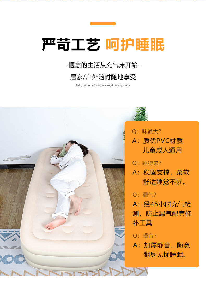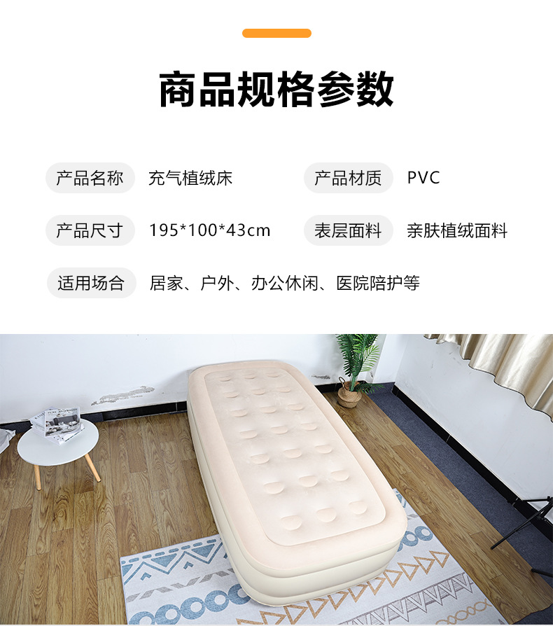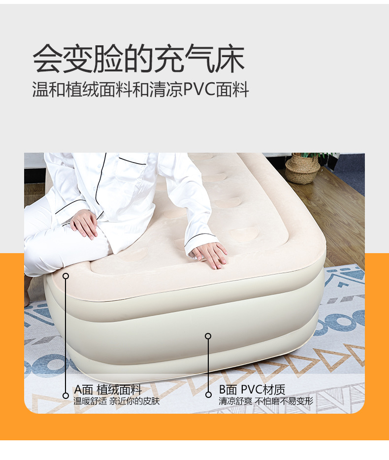 PVCインフレータブルベッド高さ厚いインフレータブル植毛ベッド自动マットレス折りたたみ家庭用ダブル昼休みエアマットレスベッド