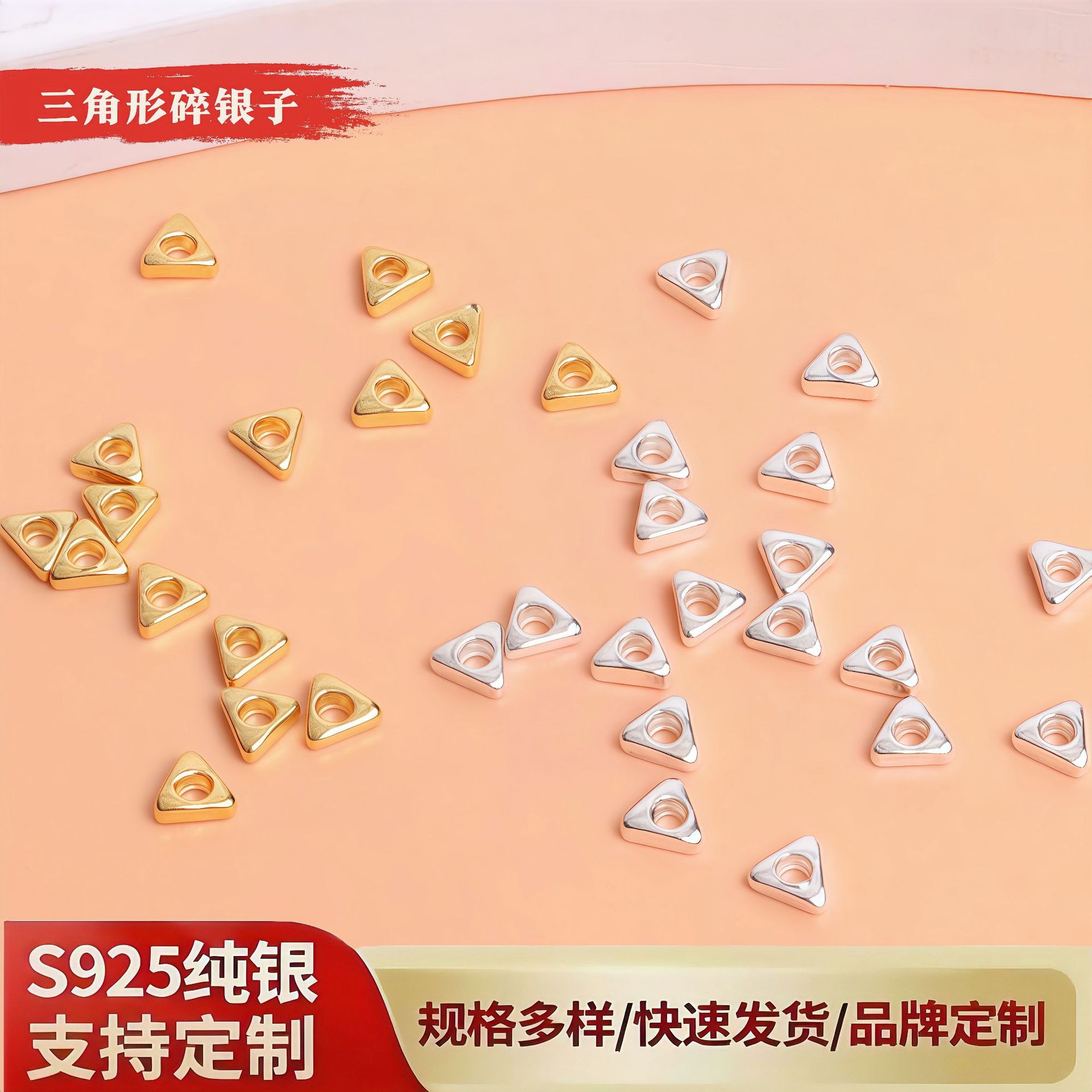 S925纯银三角形碎银子隔珠隔片 手工diy编绳手链串珠散珠饰品配件