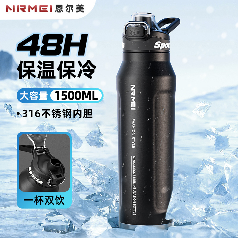 保温カップ大容量1000ml 2025新型男性316ステンレス屋外携帯ストロー運動水コップ