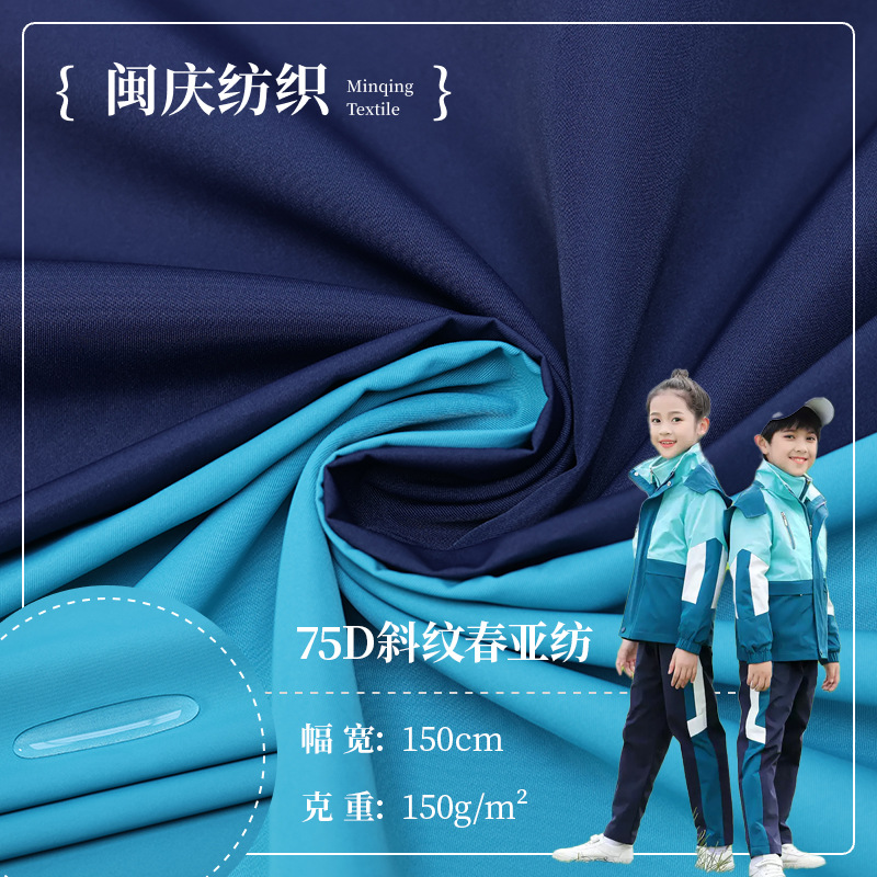 75D斜纹春亚纺防水布料 户外冲锋衣三合一羽绒服校服面料