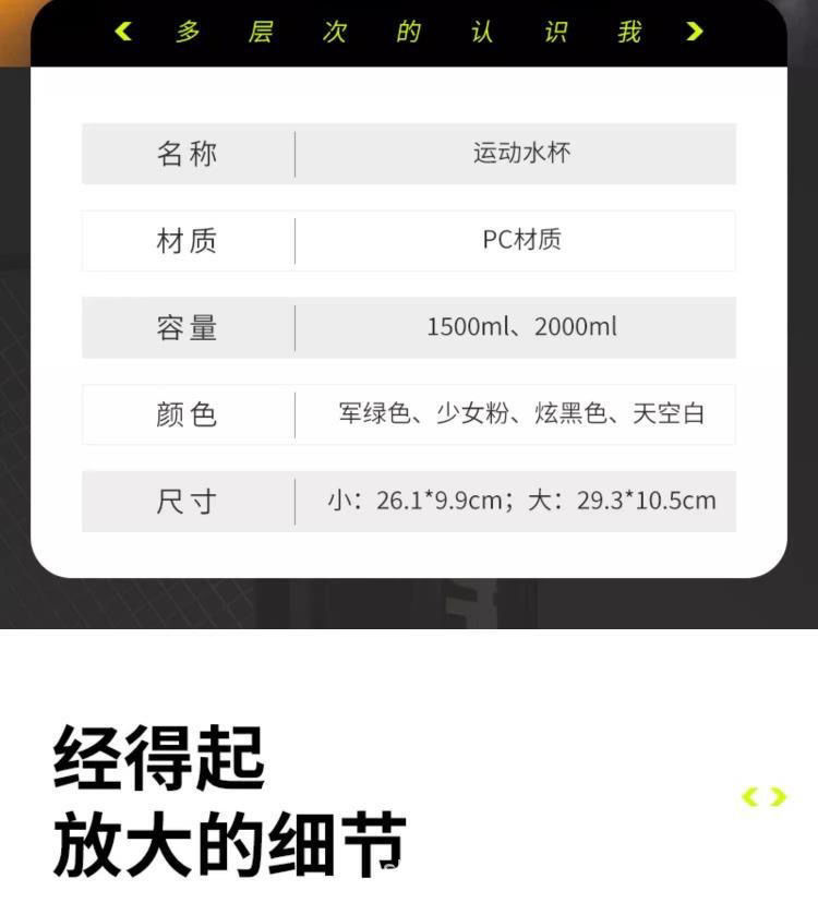 超大容量コップ耐高温運動コップ新型フィットネス大ML屋外宇宙水筒携帯水筒