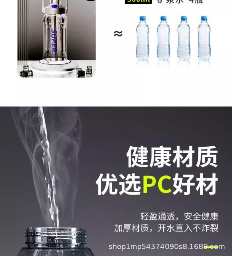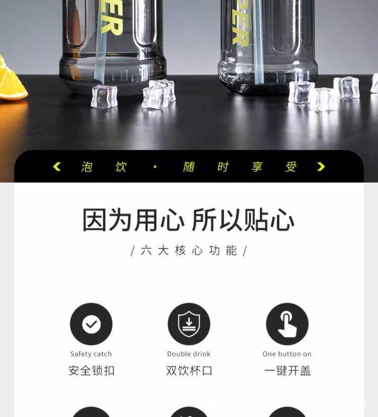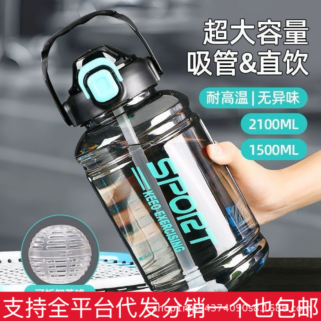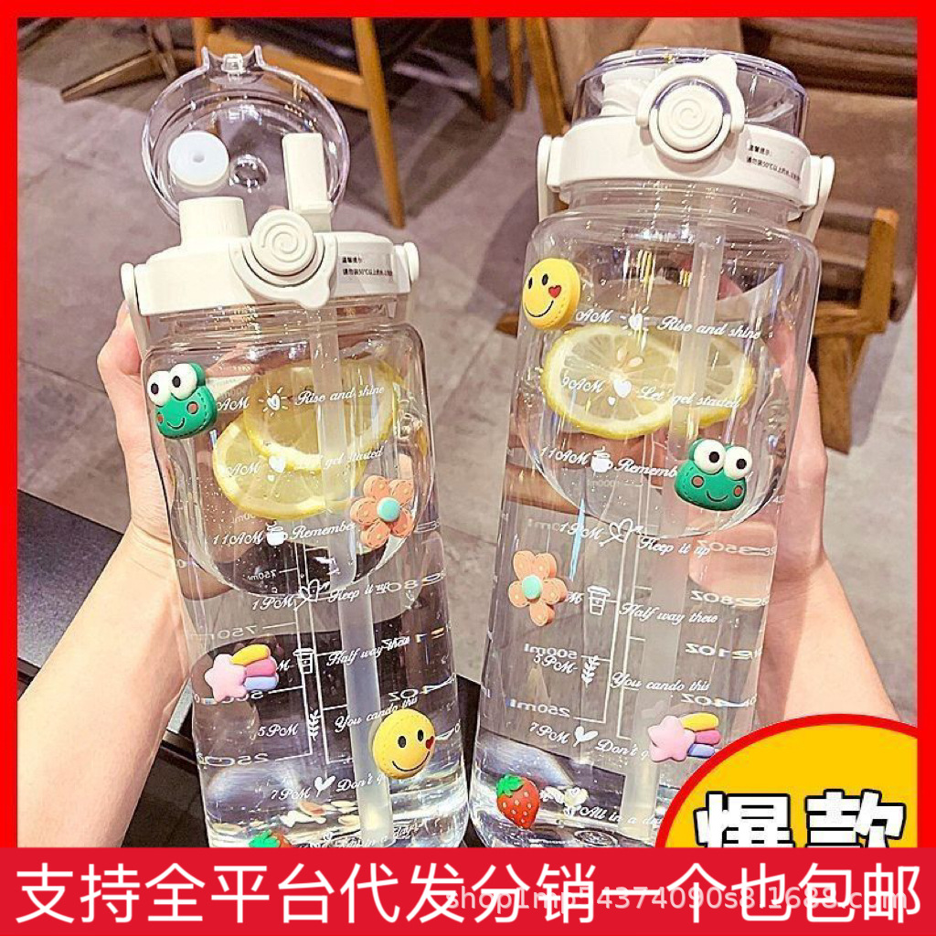 大容量运动水杯网红健身耐高温塑料杯子号水壶便携带吸管杯子