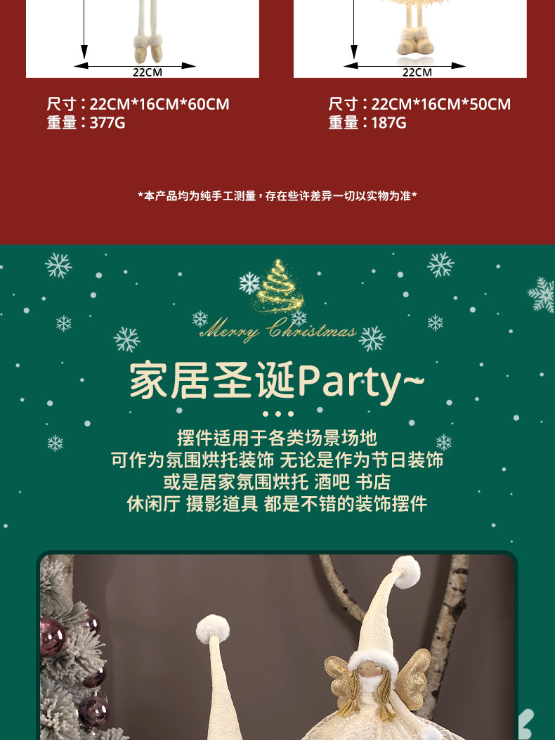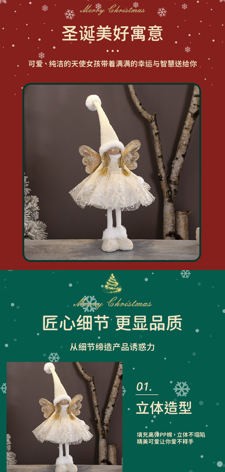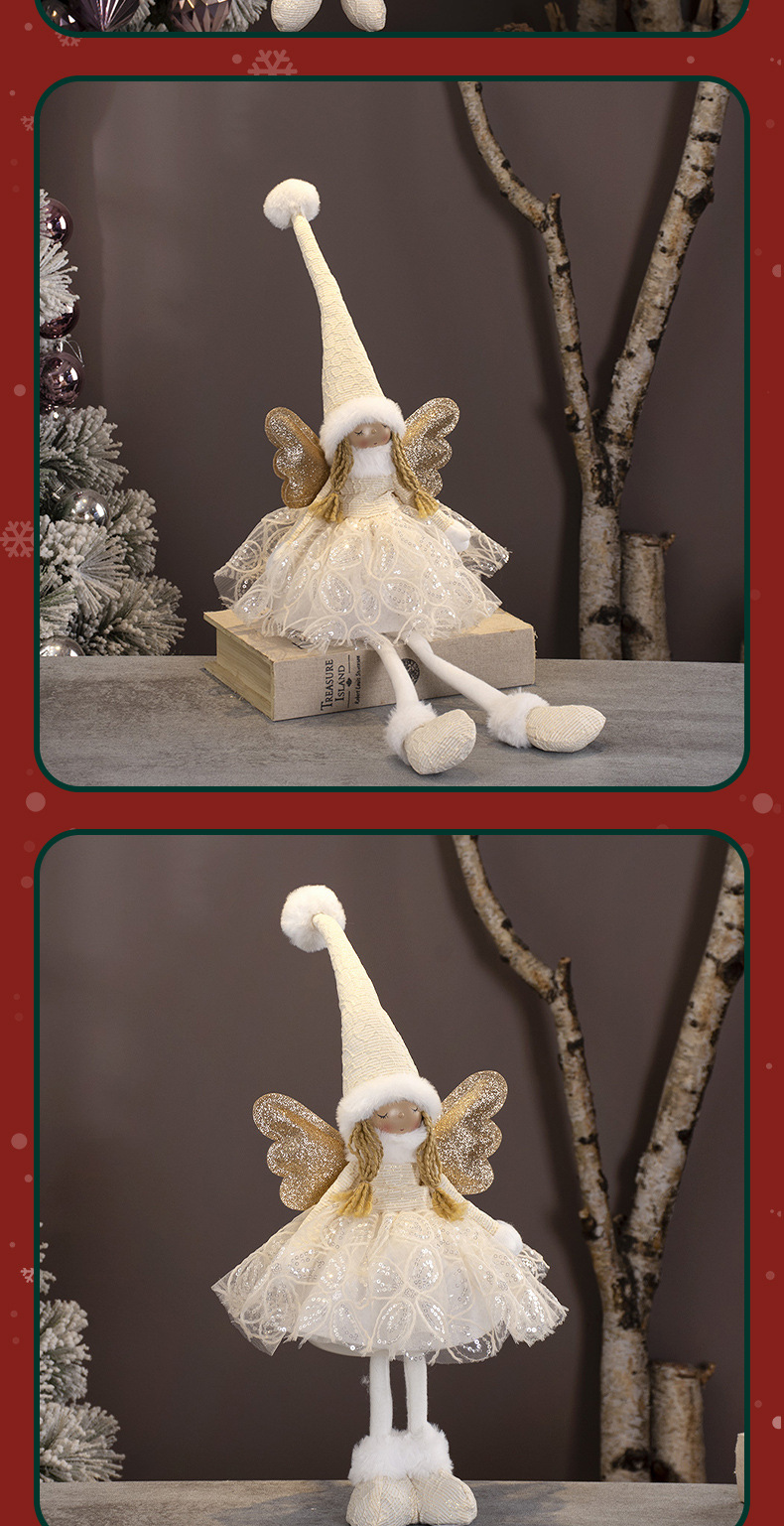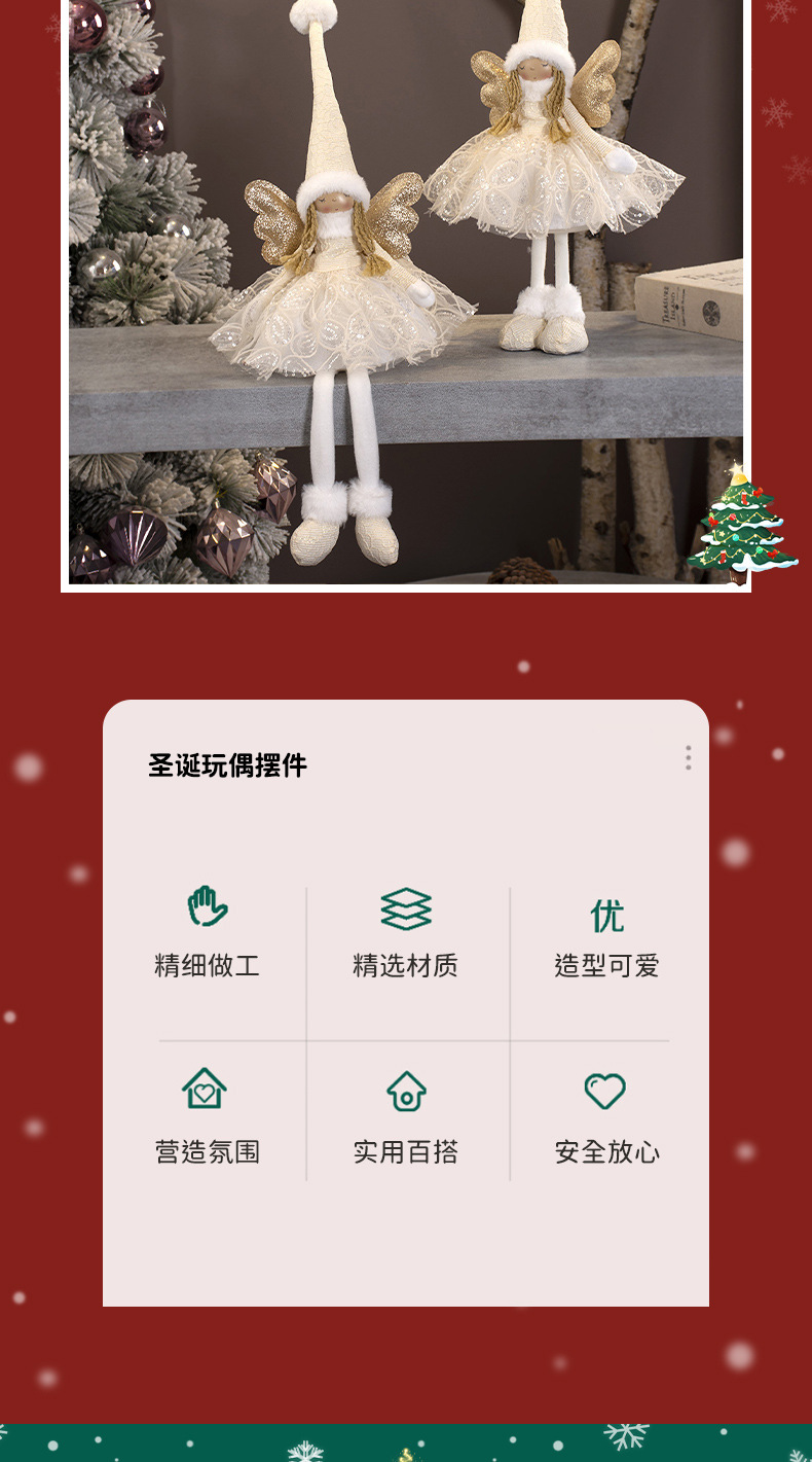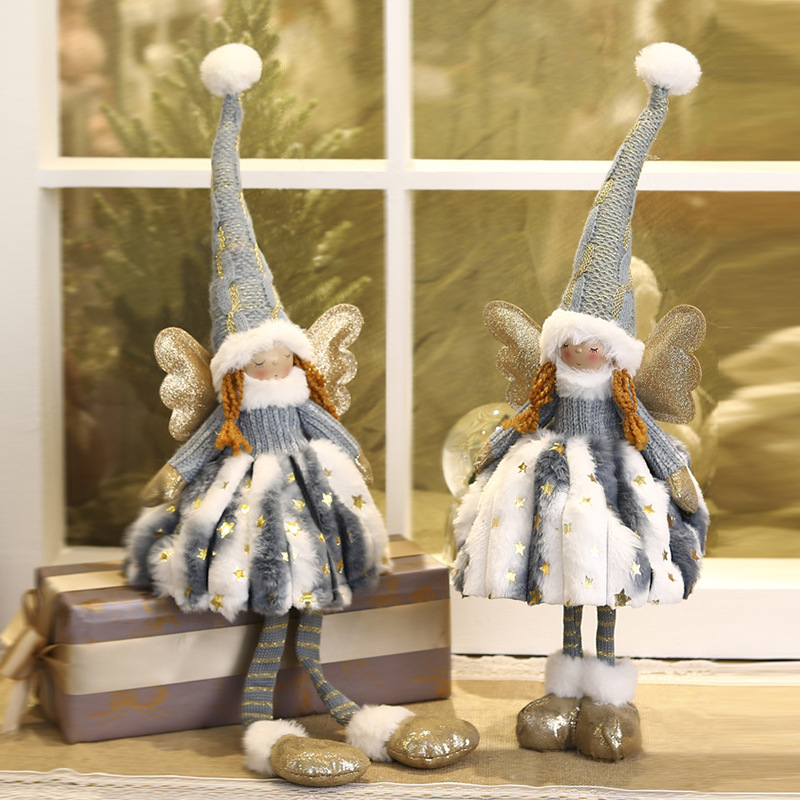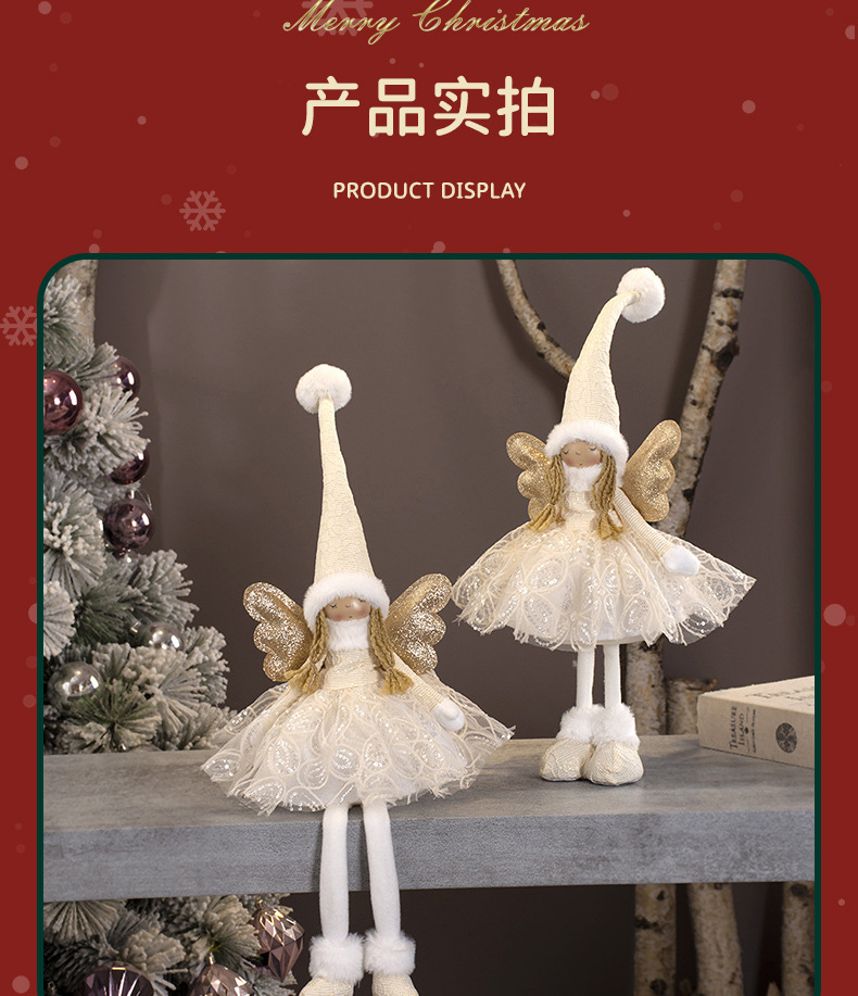 亚马逊圣诞节装饰天使女孩摆件毛绒玩偶公仔装饰品摆件挂件批发
