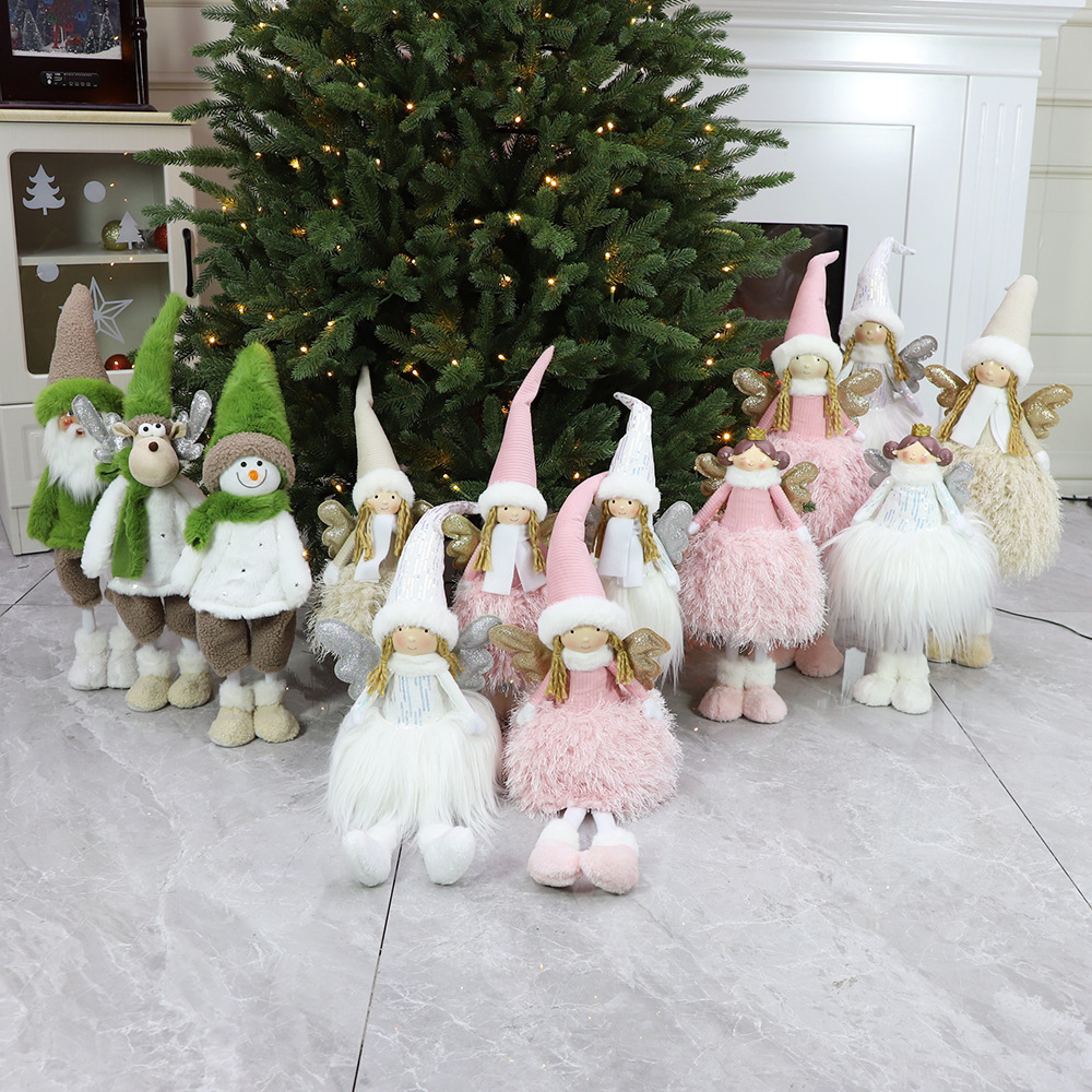 跨境热销圣诞粉色天使女孩圣诞娃娃公仔圣诞树摆件橱窗布置装饰品