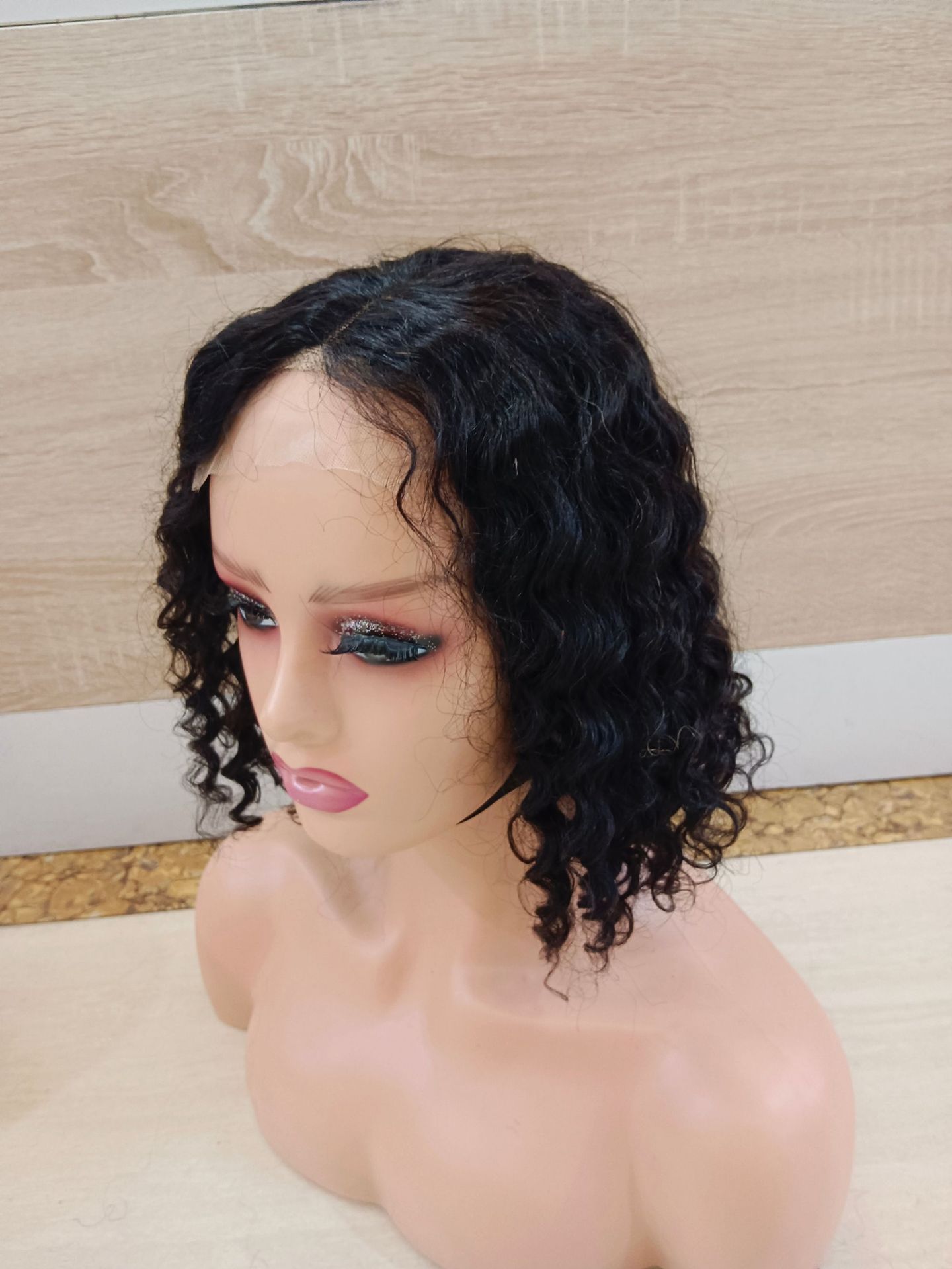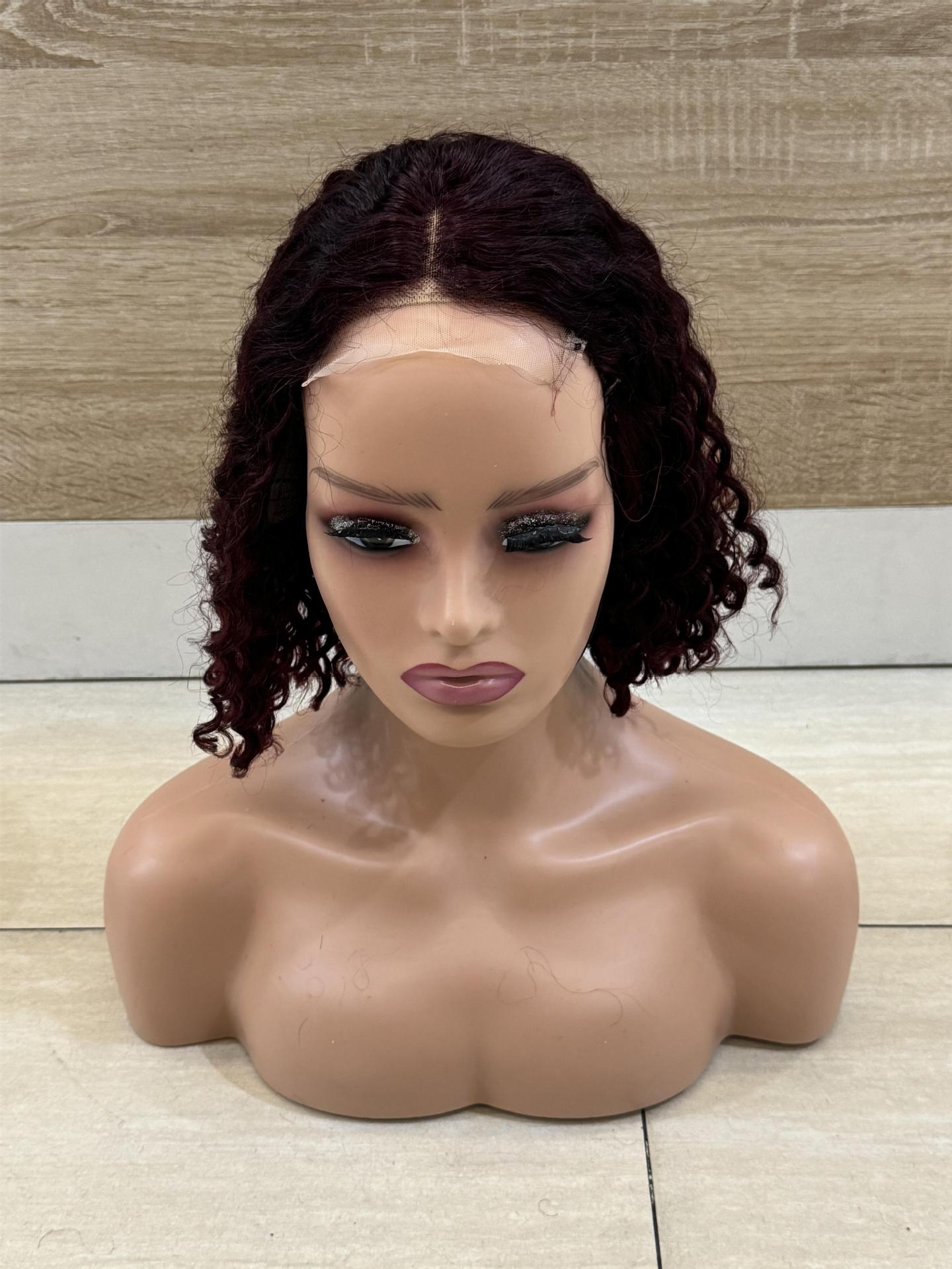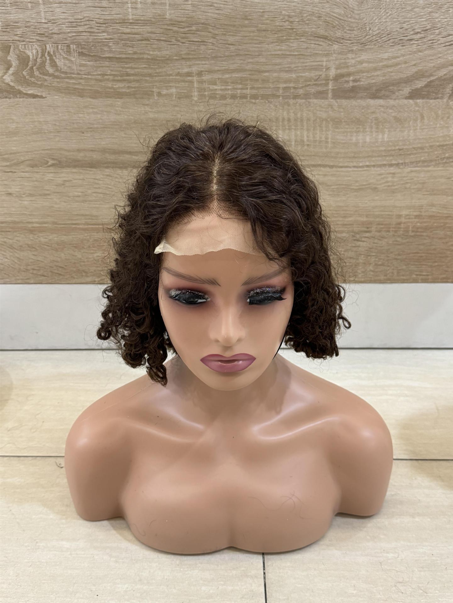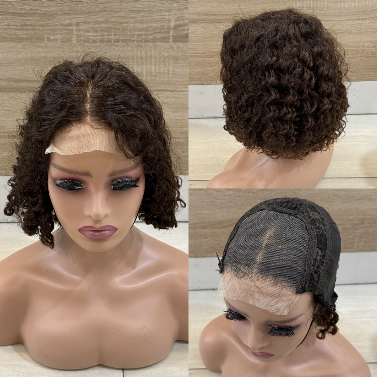 ディープウェーブ 4x4 レースボブ 100%人毛 カールレースウィッグ