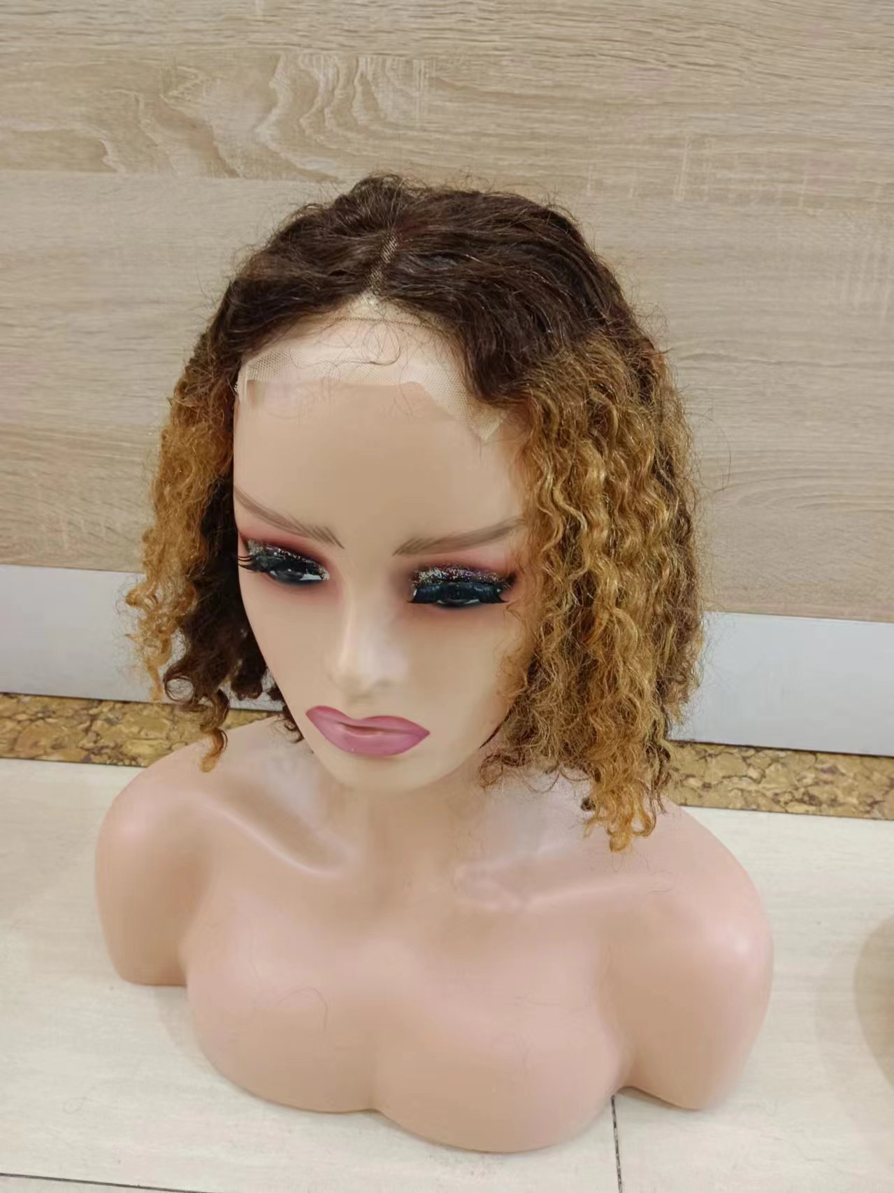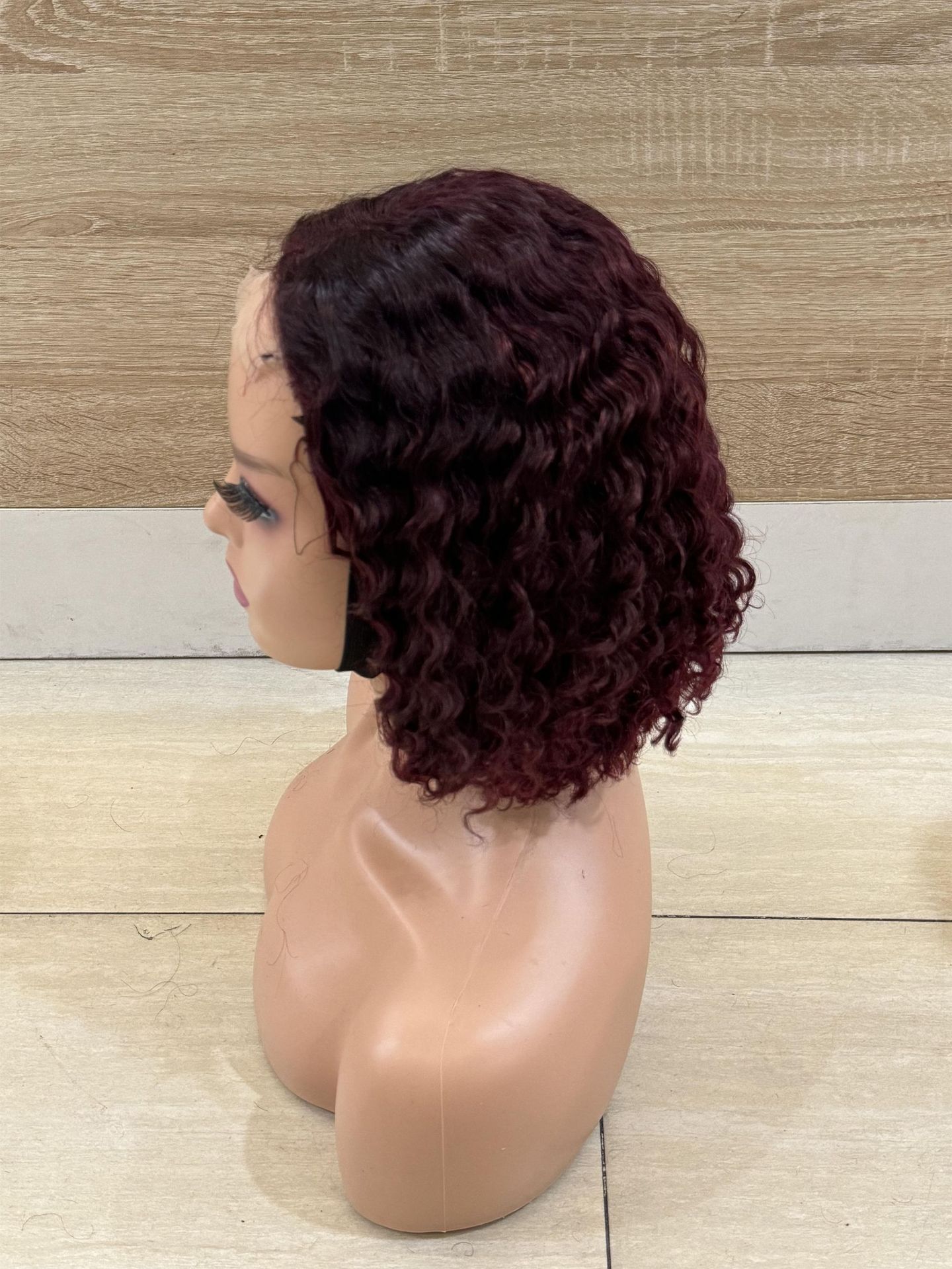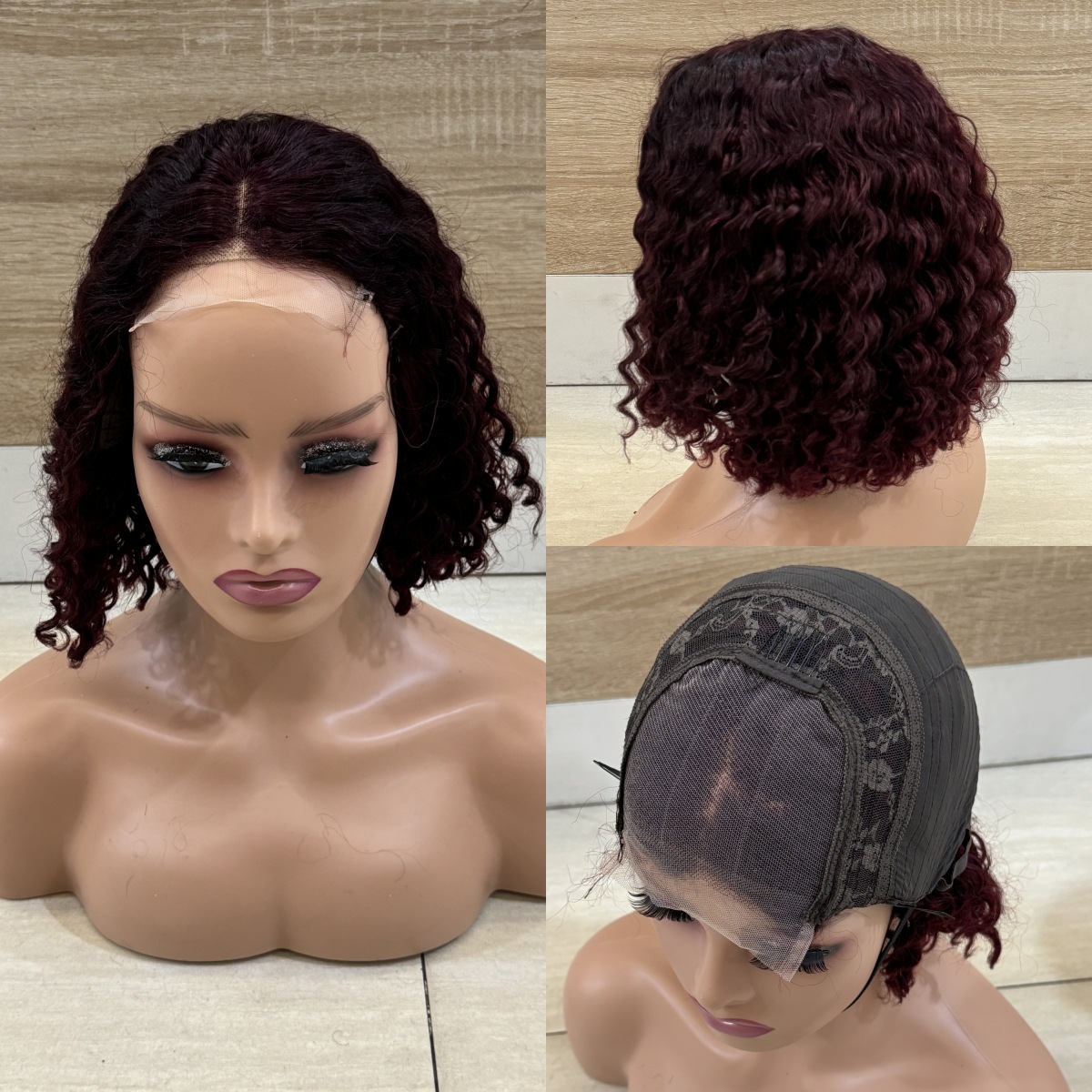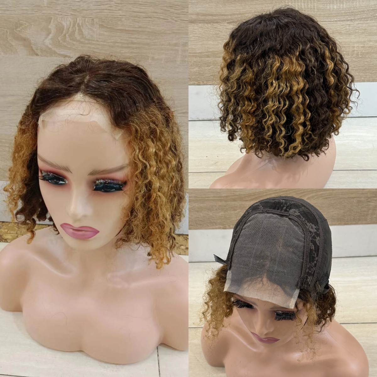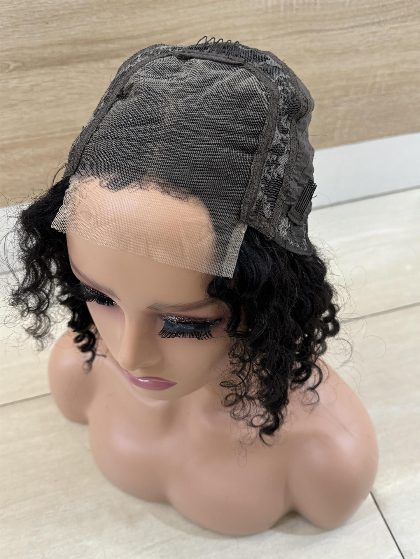 ディープウェーブ 4x4 レースボブ 100%人毛 カールレースウィッグ