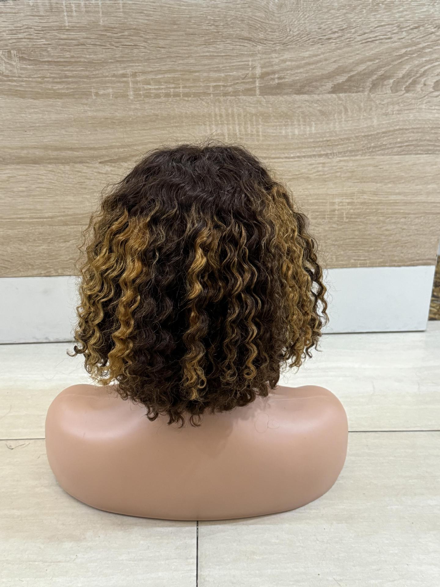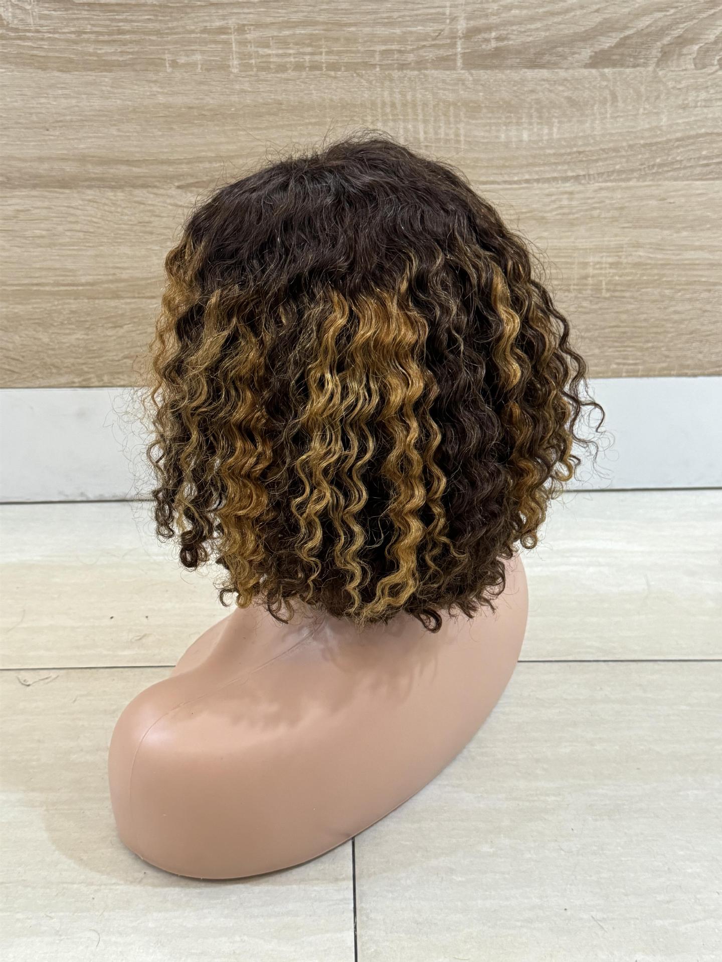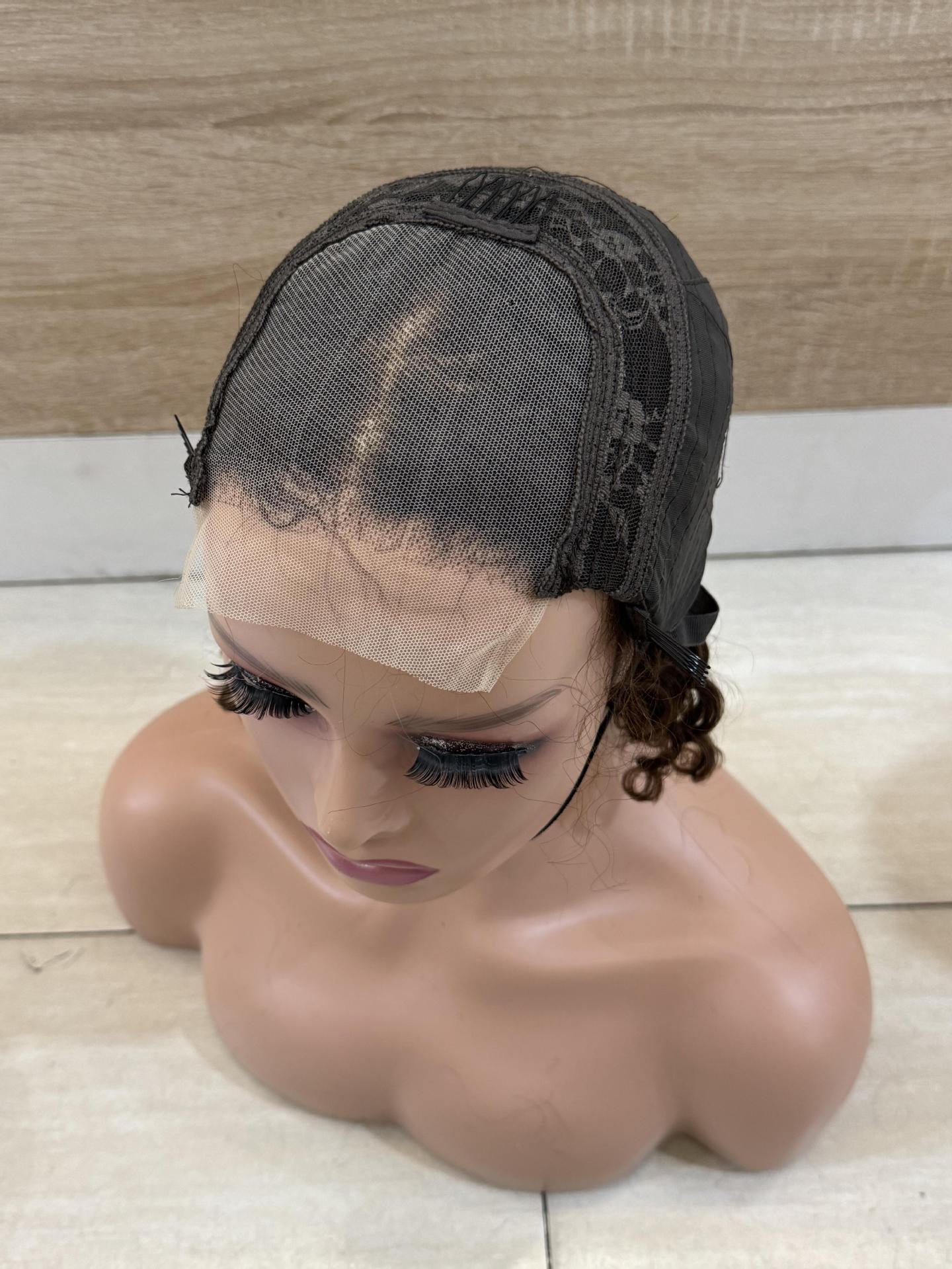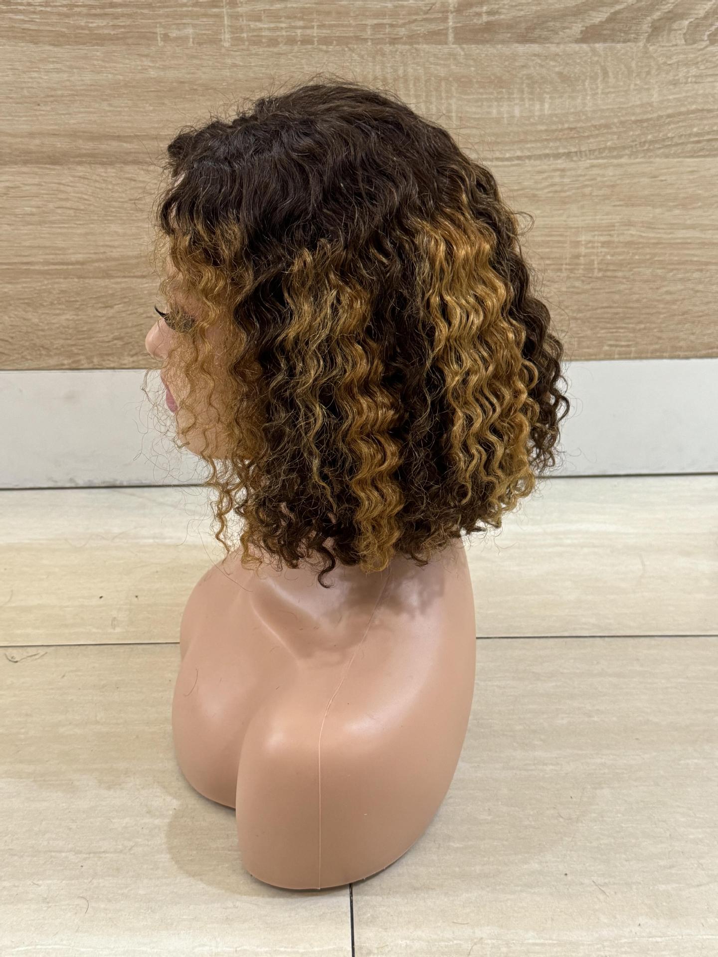 ディープウェーブ 4x4 レースボブ 100%人毛 カールレースウィッグ