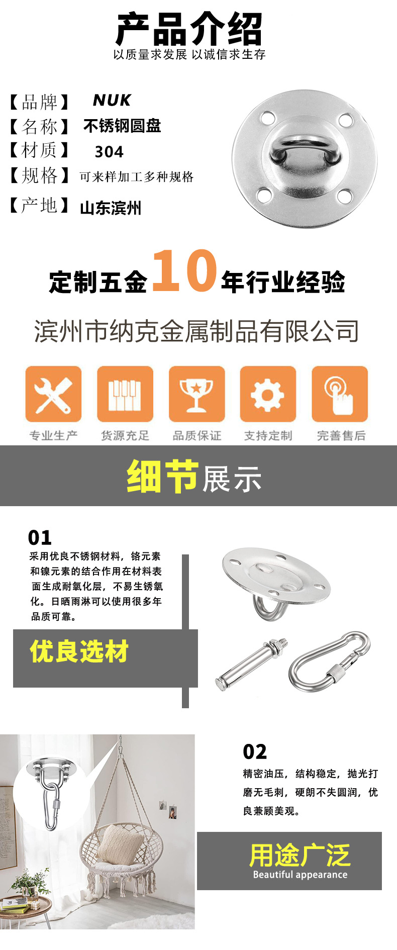 不锈钢固定盘圆盘 空中瑜伽瑜伽吊床沙袋吊椅挂钩 承重固定圆挂盘