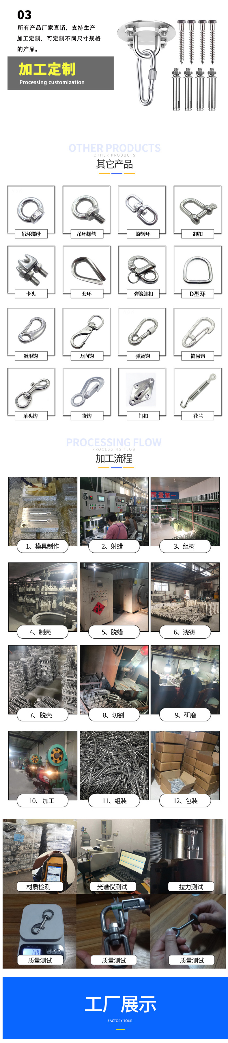 ステンレス304ブランコフックヨガハンモック砂袋吊りフック屋外重ブランコ金物