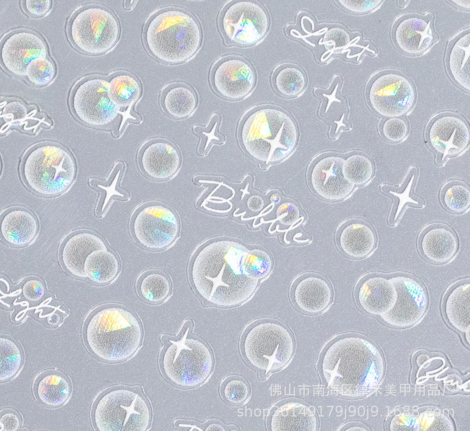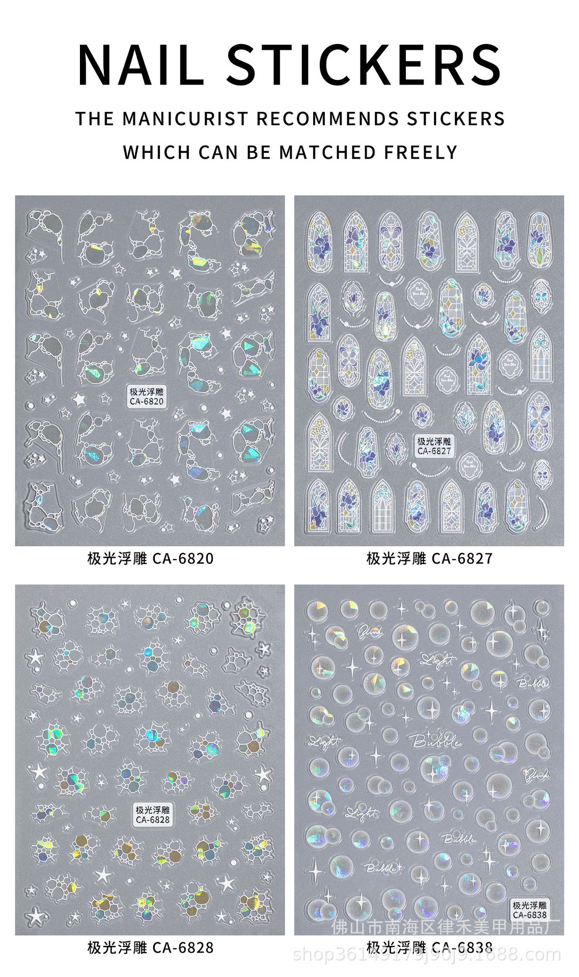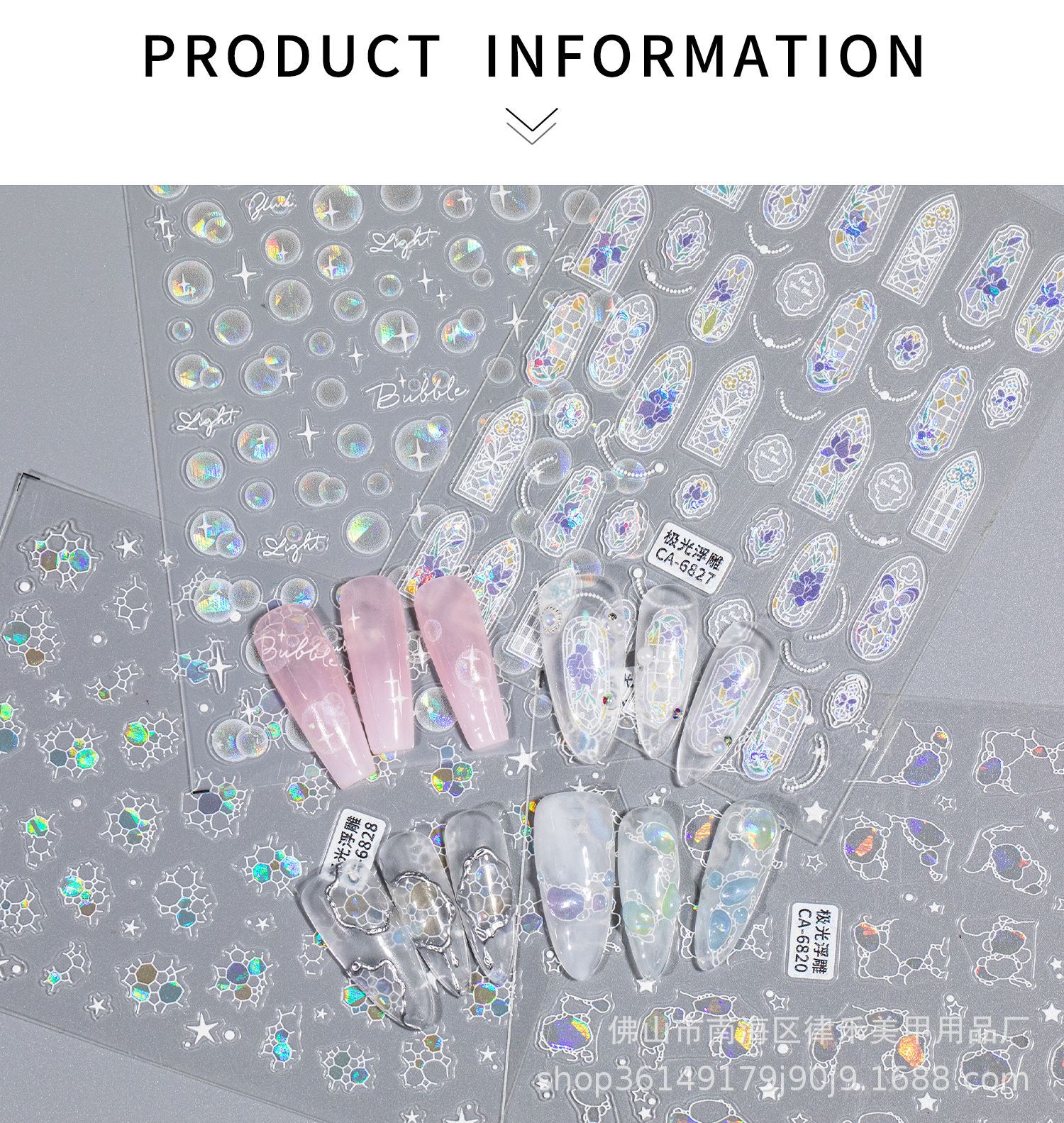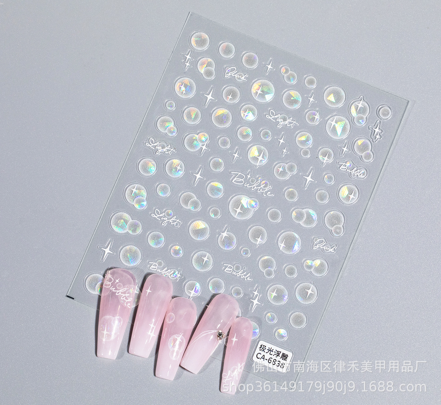 新品5Dオーロラ立体ネイル水泡瑠璃窓花ドリームレリーフステッカーキラキラ星泡ネイル