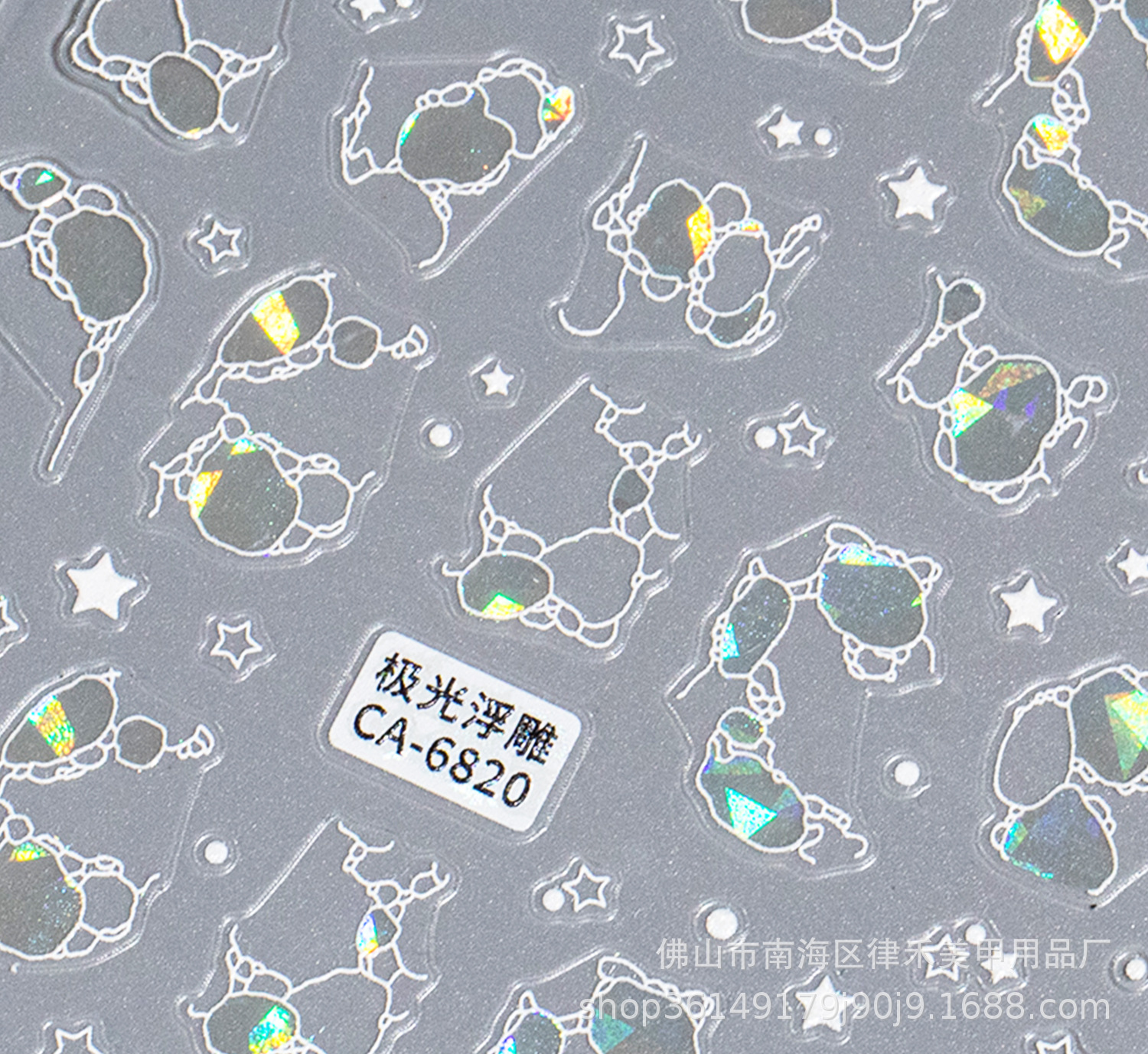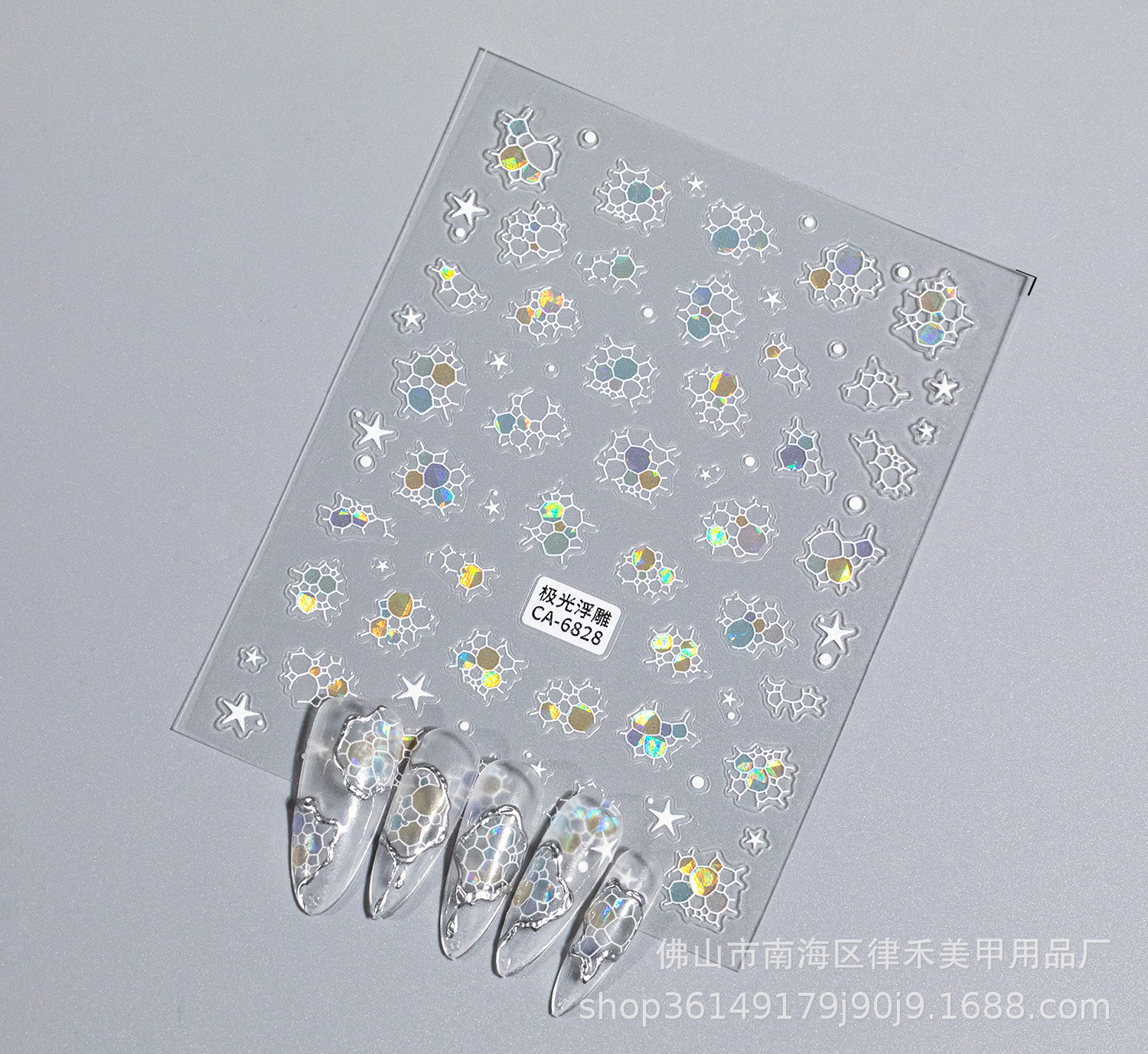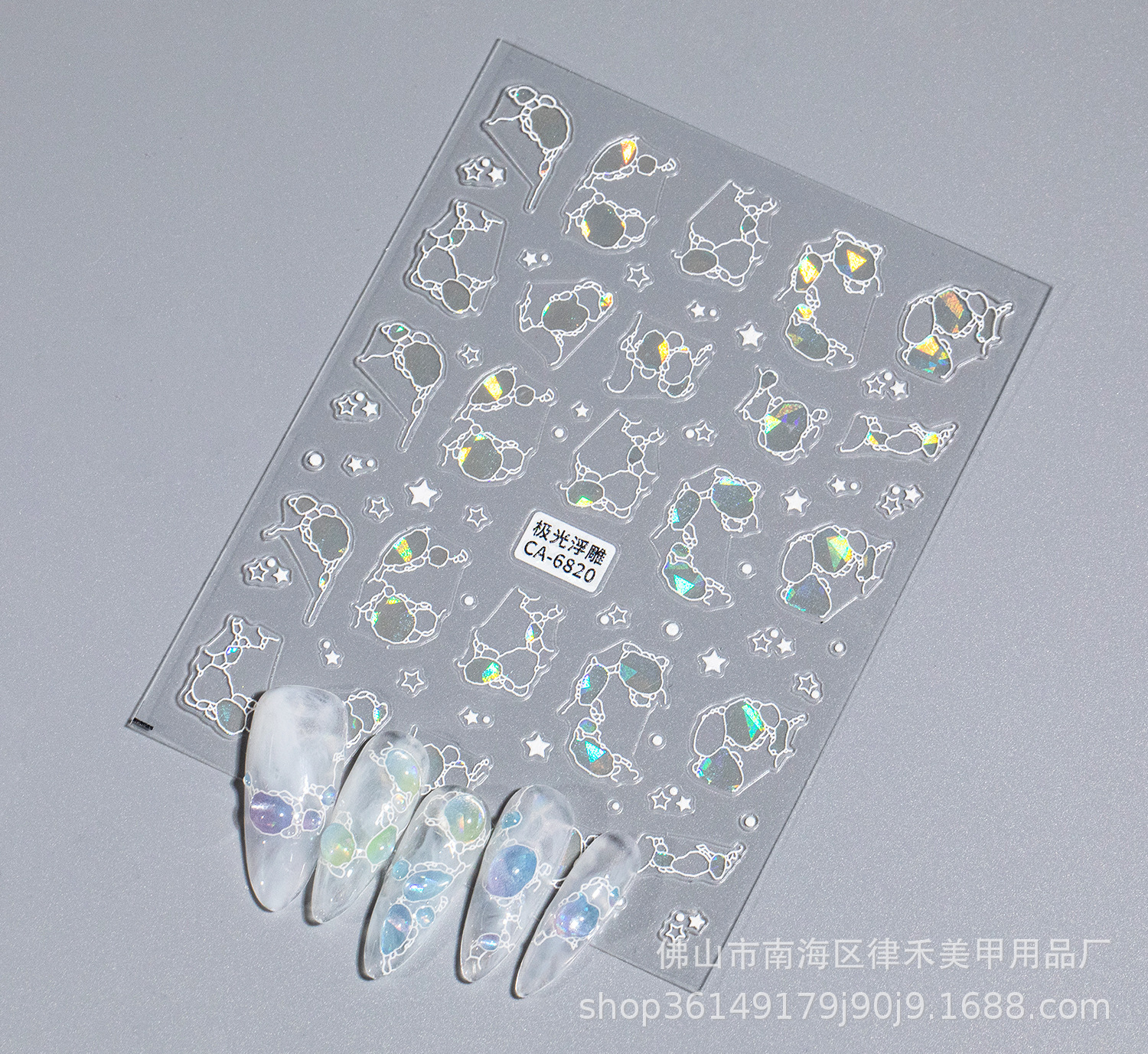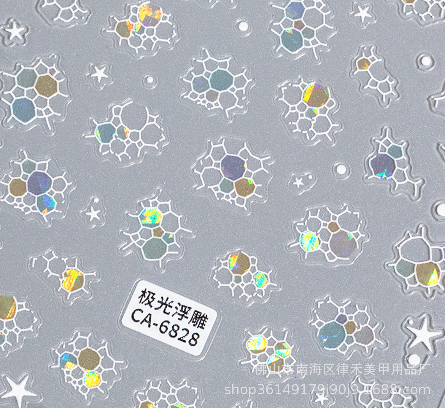 新品5Dオーロラ立体ネイル水泡瑠璃窓花ドリームレリーフステッカーキラキラ星泡ネイル