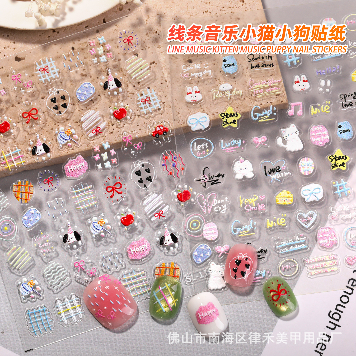 新しい漫画子犬グリッドネイルアートステッカーエンボス落書きラインかわいい愛子猫ネイルステッカー携帯電話ステッカー