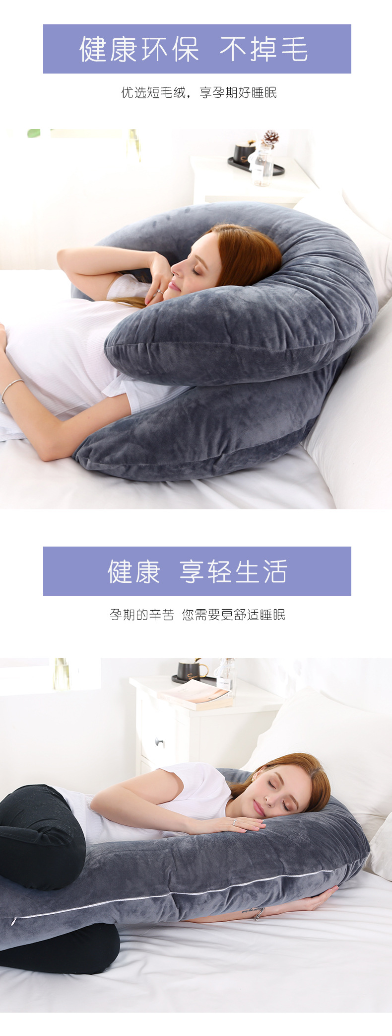 綿100%ベルベット素材の妊婦用枕カバー、C型多機能腰サポート横向き寝枕カバー、在庫あり、メーカー直販
