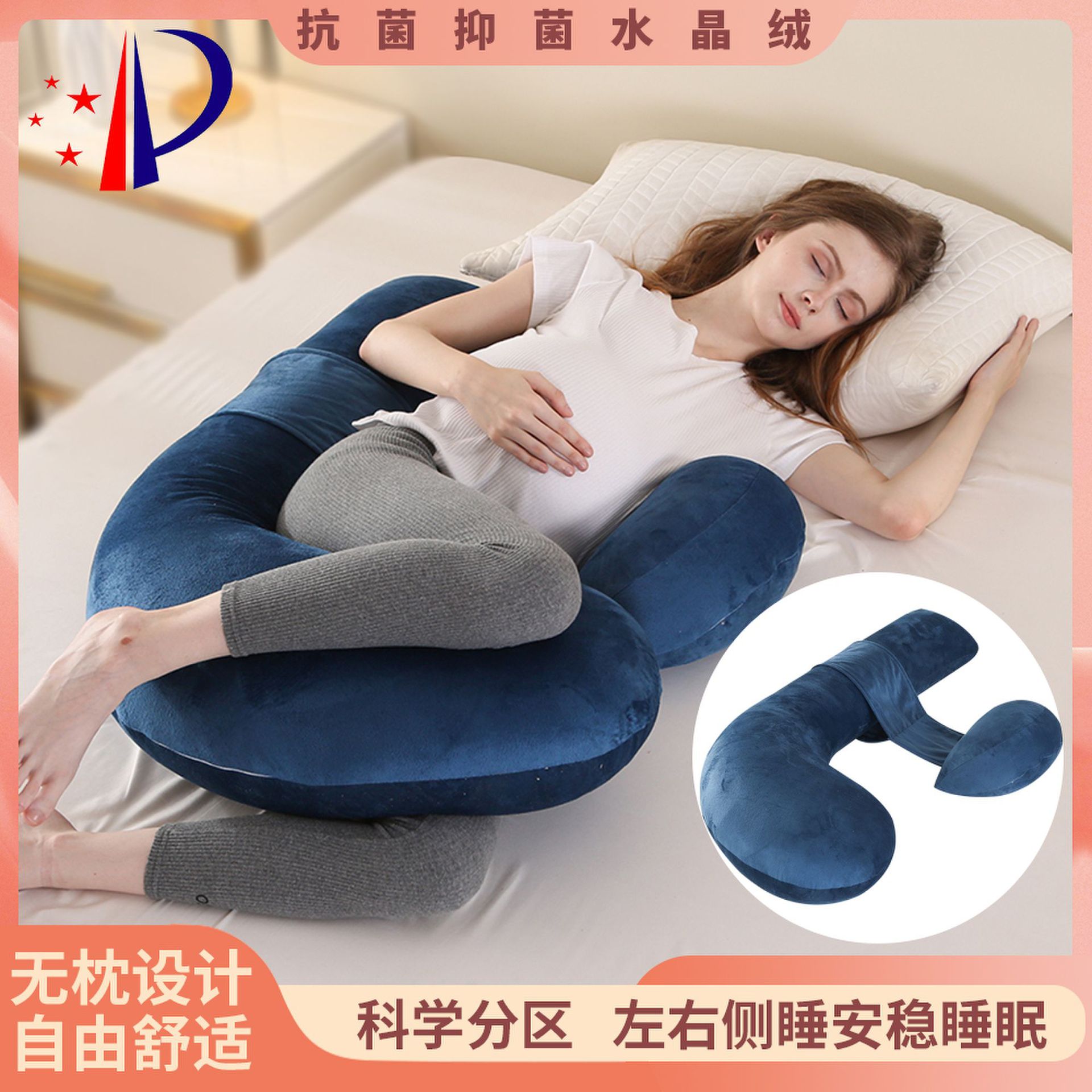 新型u型妊婦枕水晶パイルは哺乳枕メーカーの卸売り妊婦が腰をかばって横に寝て枕を抱くことができる