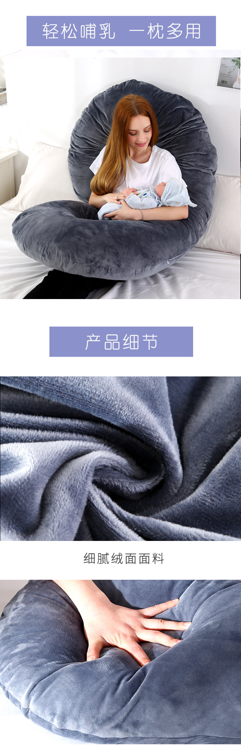 快適な豆豆ベルベット素材の妊婦用ベッド授乳グッズ、厳選された柔らかさ、特大サイズ、厚手、双子の授乳にも最適