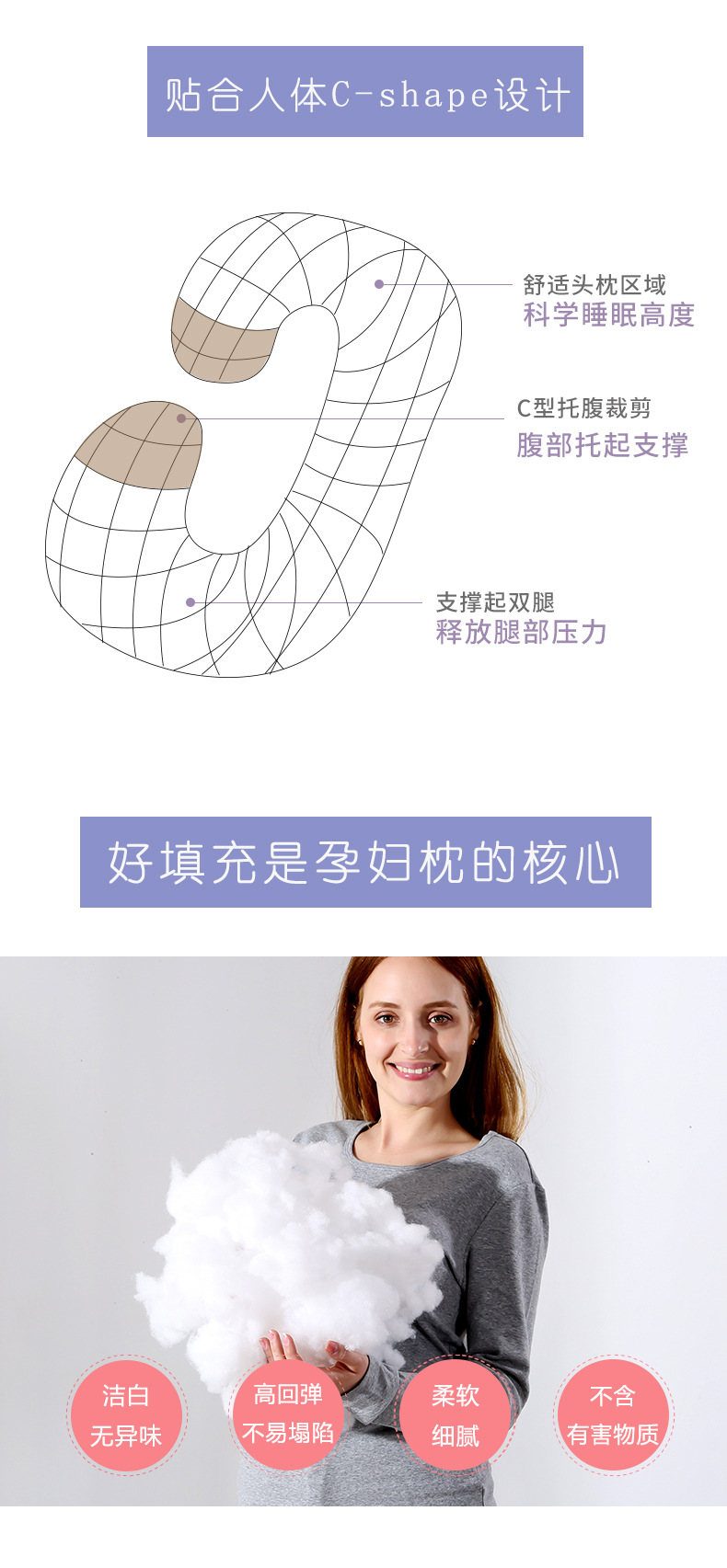 妊婦用枕C型腰保護横向き寝枕カバーAmazon独立サイトebay速売通工場直販妊娠中の女性専用