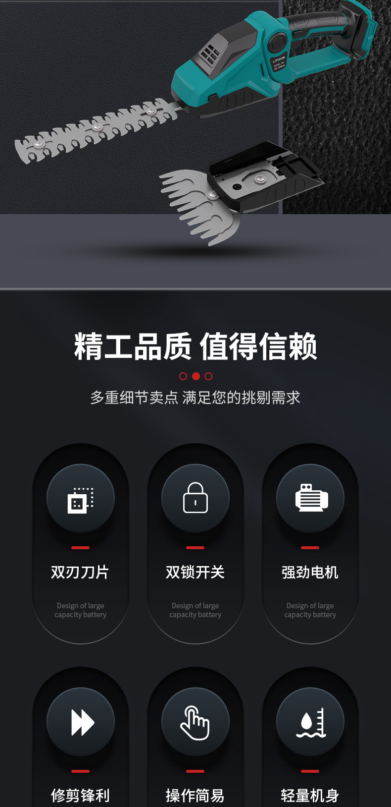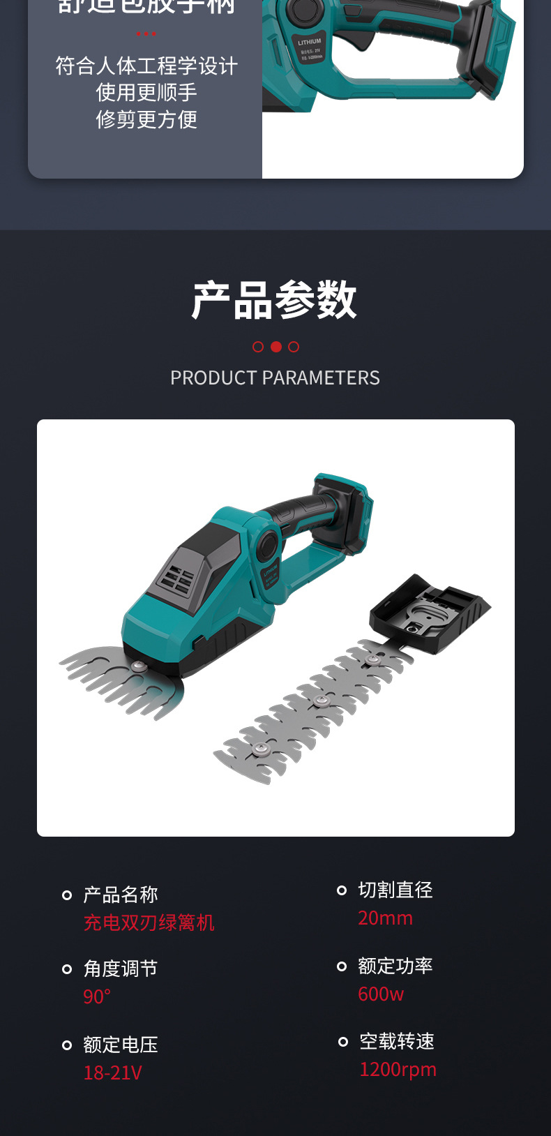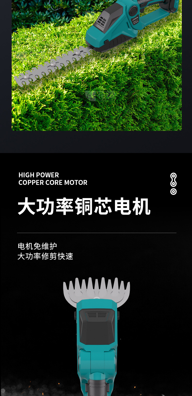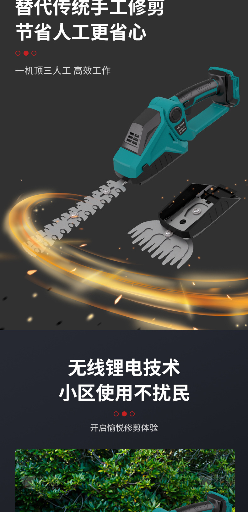 新款电动绿篱修剪机便携式锂电多功能绿篱机户外绿化双刃修剪机